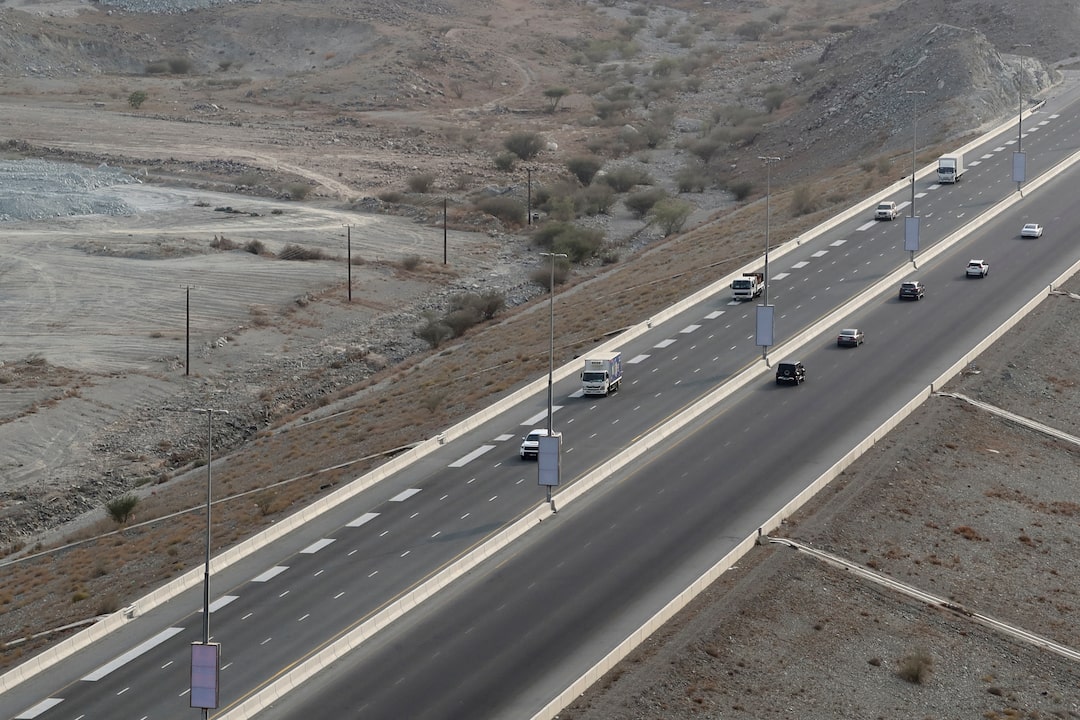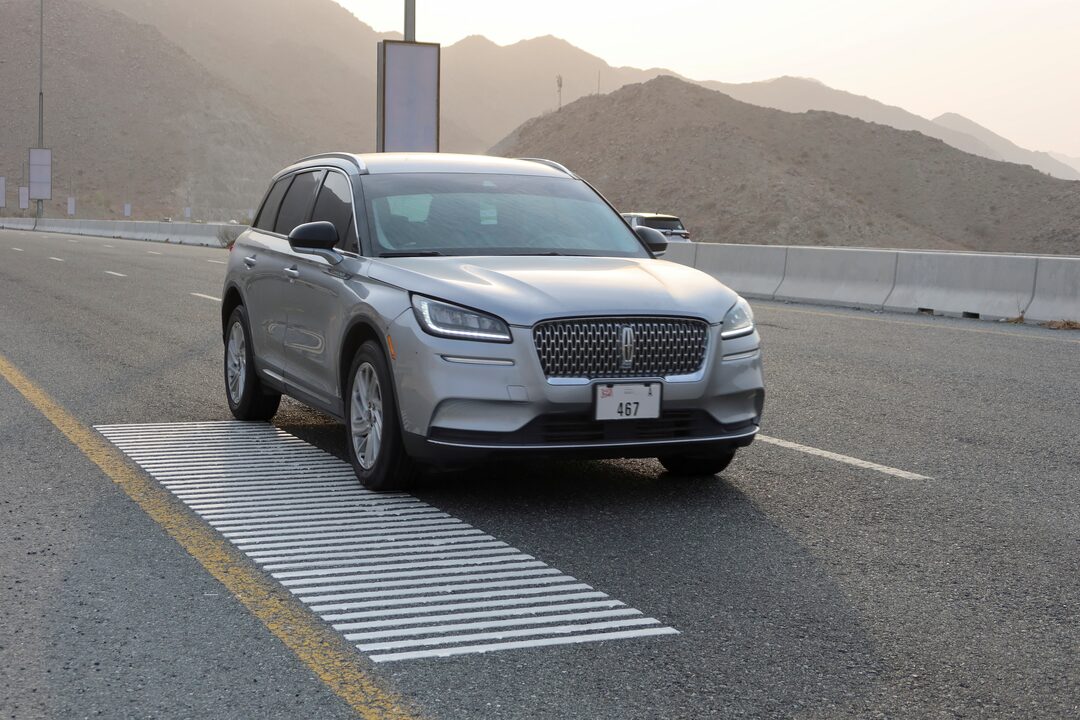 2025年7月15日,阿聯酋富查伊拉,車輛駛過一條名為"音樂公路"的高速路上的減速帶,這些減速帶會播放路德維希·範·貝多芬的第九交響曲。圖為三張系列照片的第一張。路透社/阿卜杜勒·哈迪·拉馬希/檔案照片