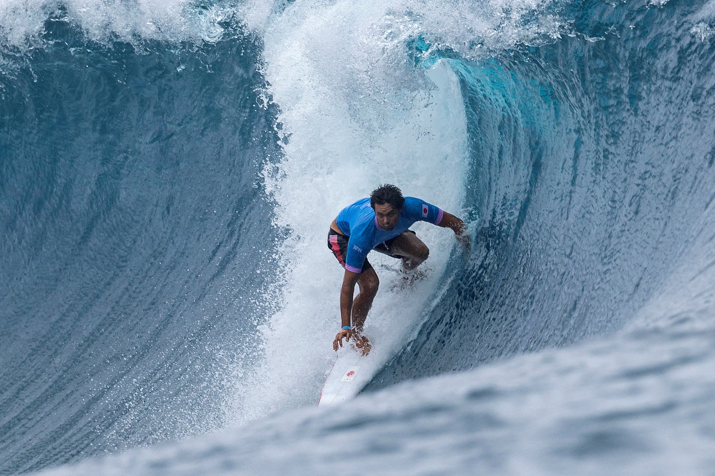2024年巴黎奧運會 - 衝浪 - 男子第三輪第8組 - 法屬波利尼西亞塔希提島提阿胡普 - 2024年7月29日。日本選手康納·奧利里正在衝浪。埃德·斯隆/路透社/檔案照片購買授權許可,打開新標籤頁7月19日(路透社) - 日本選手康納·奧利裏週五在南非科羅娜公開賽J-Bay站贏得了他的首個世界冠軍巡迴賽冠軍。