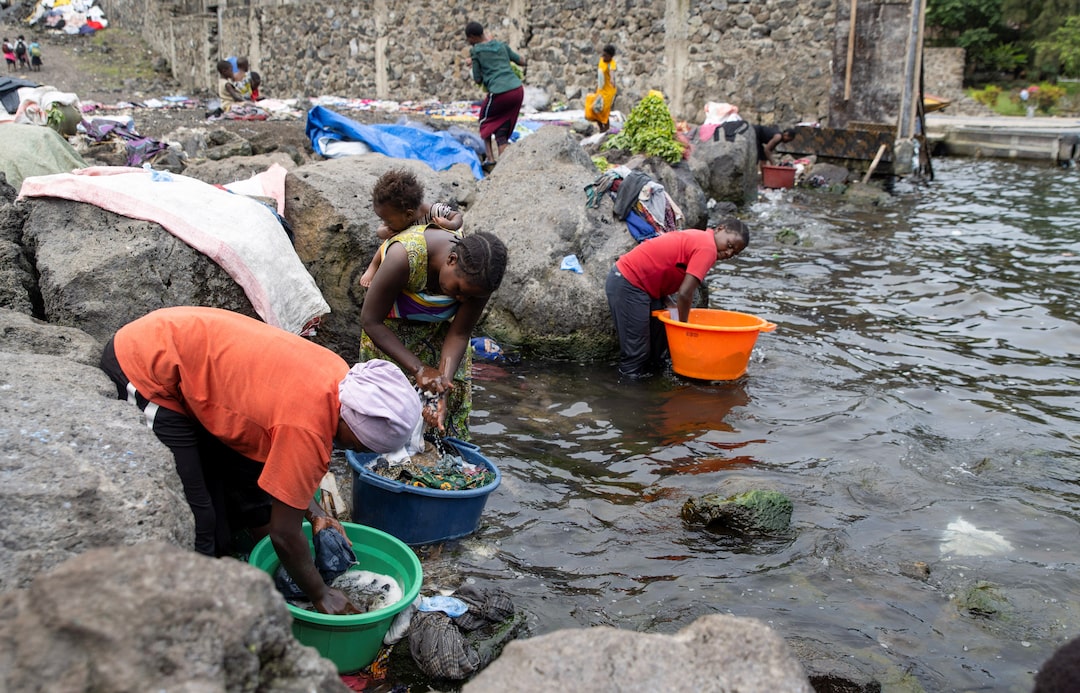 10項中的第1項 2025年6月16日,在剛果民主共和國北基伍省戈馬,由於美國國際開發署削減了對非政府組織Mercy Corps的資助,導致Bosco Lac地區的水源供應中斷,原本應該供應城市西部區域的水源連接被停止,婦女們在基伍湖岸邊洗衣服。路透社/Arlette Bashizi
