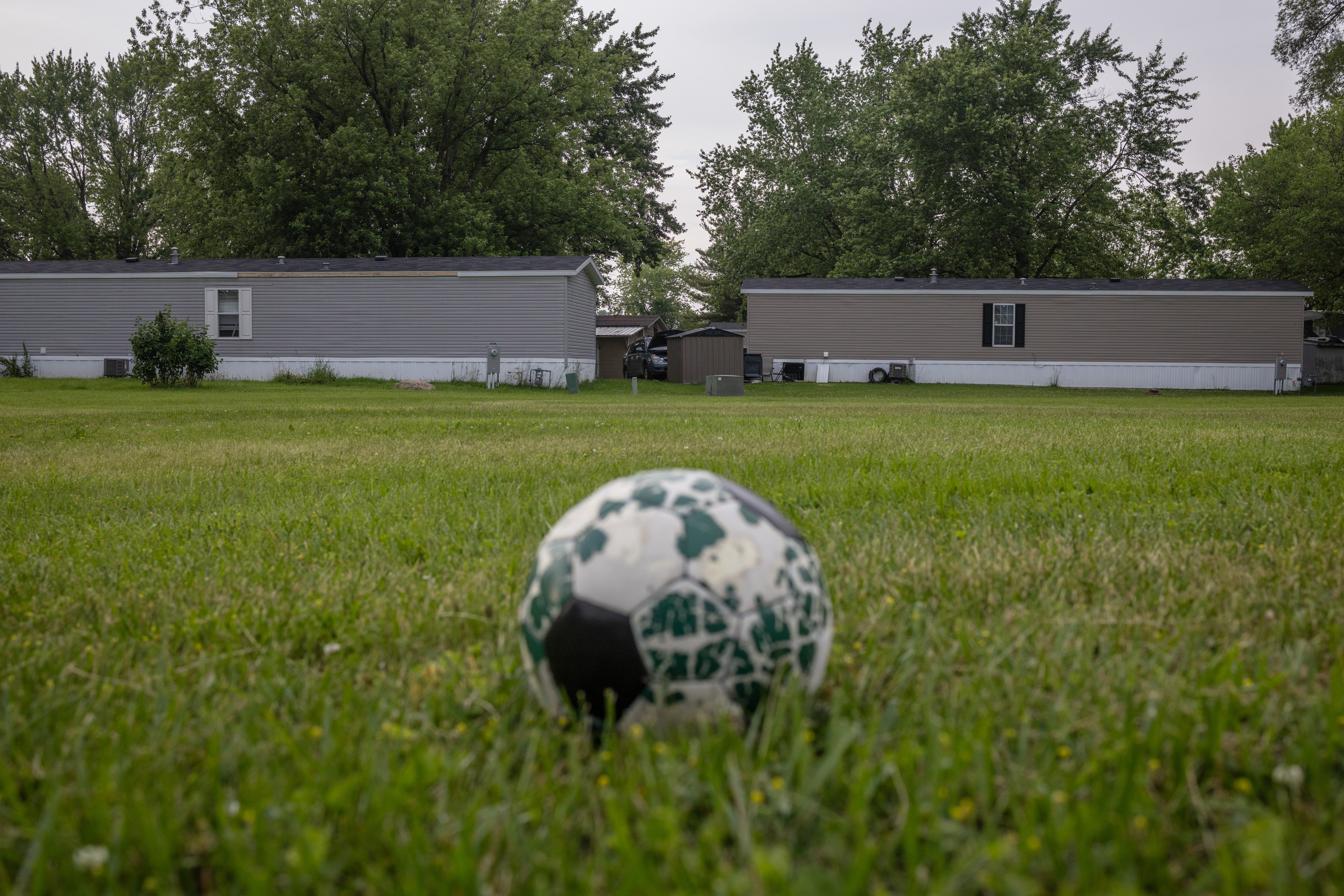 一個足球躺在梅jia所住拖車公園附近的空地上。2019年,為逃離危地馬拉的性侵和幫派暴力兩年後,她遷居至此。路透社/卡洛斯·巴里亞### 持久創傷