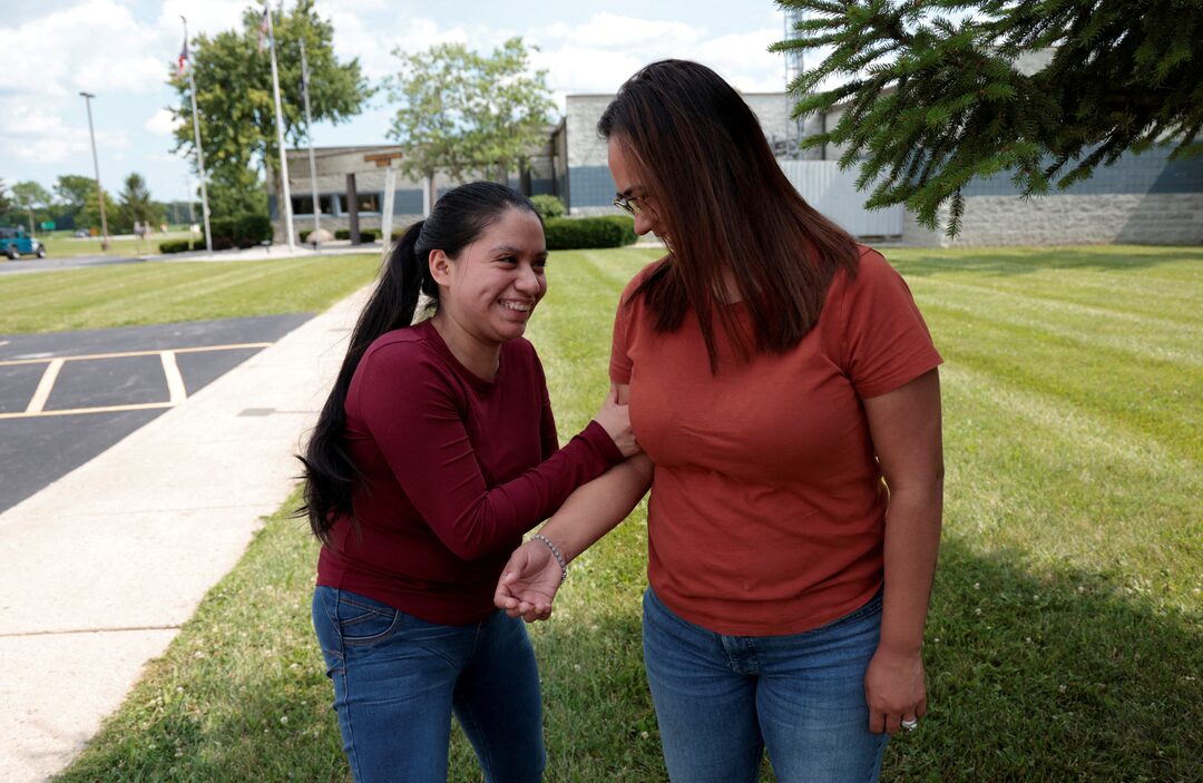 圖1/4:危地馬拉移民英格麗德·梅希亞在俄亥俄州蒂芬市移民拘留所被關押超過120天后獲釋,站在塞內卡縣監獄前,2025年7月3日。路透社/麗貝卡·庫克