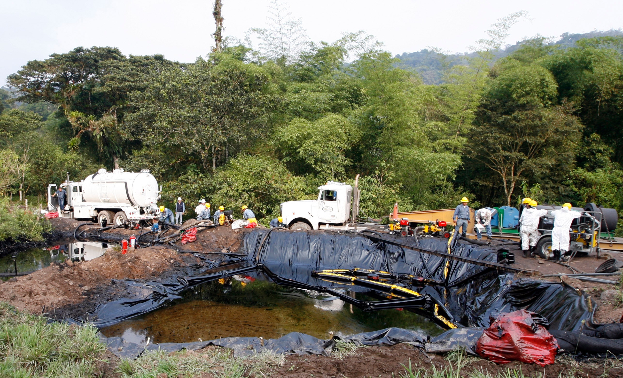 檔案照片-2009年2月26日,工人們在聖羅莎河清理石油泄漏。厄瓜多爾第二大輸油管道的破裂污染了亞馬遜茂密雨林中的聖羅莎河,並中斷了原油流向埃斯梅拉達斯市太平洋港口的輸送。OCP輸油管道,… 購買許可權利, 打開新標籤頁閲讀更多基多,7月23日(路透社)- OCP厄瓜多爾公司在一份聲明中表示,重油輸油管道OCP在完成第二條旁路的建設併成功進行必要的安全運行技術測試後,於週三恢復了泵送。