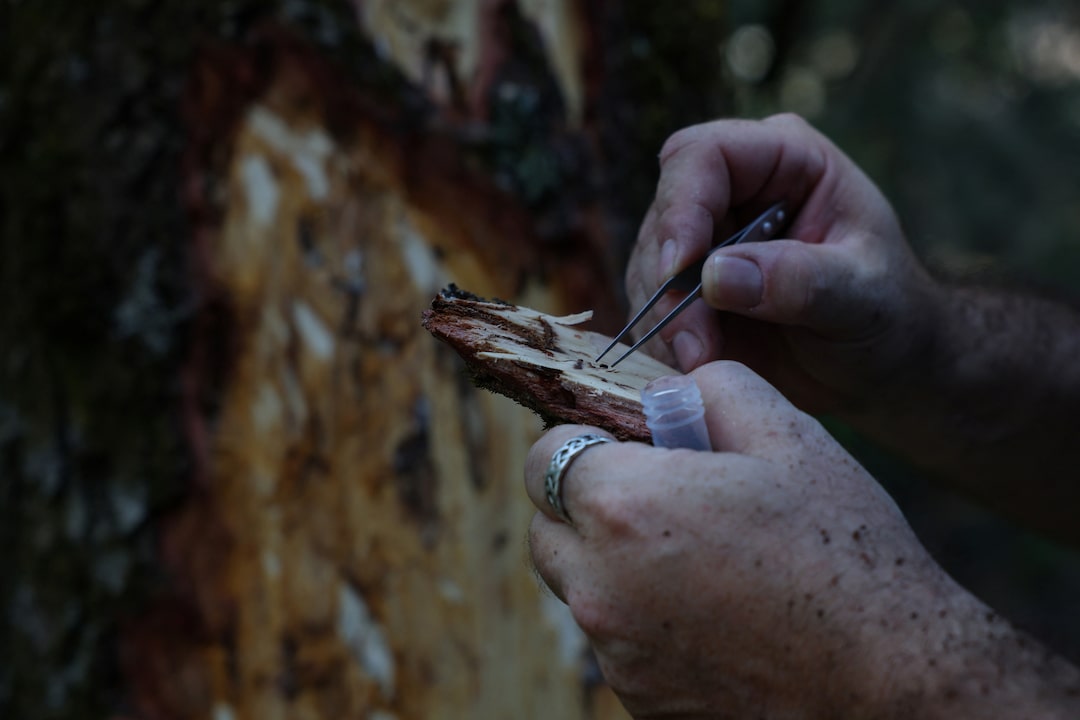 “這些都是蛀木甲蟲,“希臘國家研究機構"德墨忒爾農業組織"的森林昆蟲學家兼研究主任迪米特里奧斯·阿夫齊斯説道。他在卡拉夫裏塔剖開一棵腐爛樹木的樹皮,發現了一隻甲蟲,隨後將其裝入小瓶以待檢驗。“雖然它們的種羣規模不及樹皮甲蟲,但對樹木的破壞性同樣致命。”
