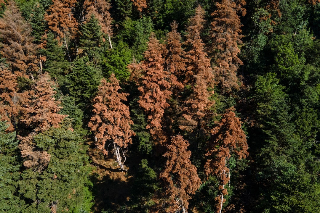 水分減少意味着冷杉樹更容易受到蛀蟲侵害——這些害蟲會鑽入樹皮產卵並蛀蝕通道,破壞樹木在根系與枝幹間輸送養分的能力,最終導致樹木死亡。