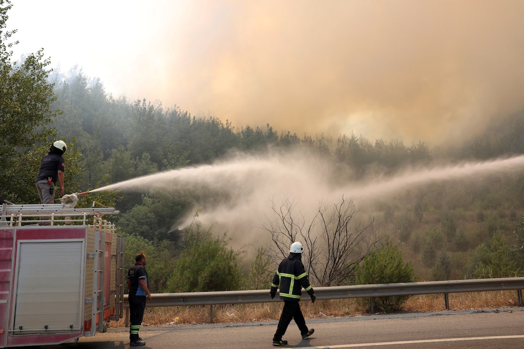 圖集1/5:2025年7月24日,土耳其比萊吉克省西部奧斯曼尼利附近,消防員正在應對野火。路透社/Dilara Senkaya