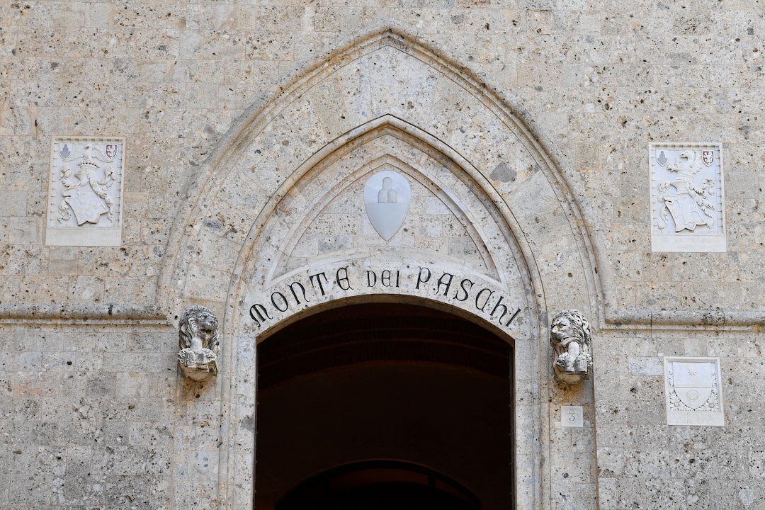 圖1/2 2021年8月11日,意大利錫耶納,全球最古老的銀行——西雅那銀行(MPS)總部入口處的景象。該銀行正面臨大規模裁員,這是其計劃中的企業合併的一部分。路透社/Jennifer Lorenzini/檔案照片