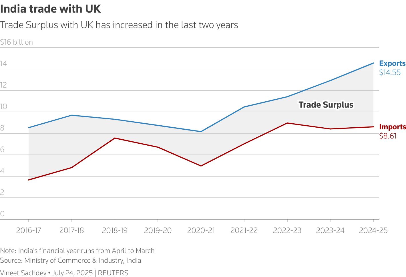 圖表顯示了印度與英國之間的歷史年度貿易數據