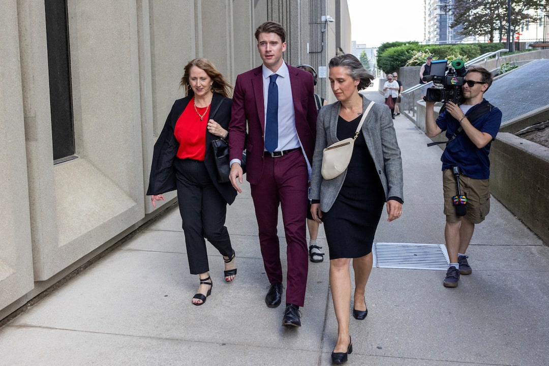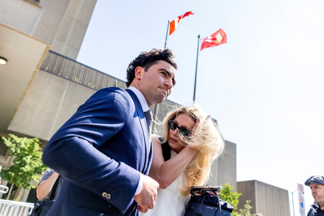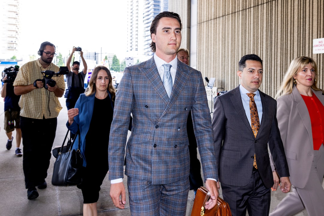 5項中的第1項 卡特·哈特離開法庭,此前法官裁定他和他的隊友在涉及加拿大2018年世界青年冰球金牌冠軍隊球員的審判中無罪,這些球員被指控在酒店房間內性侵一名女性,2025年7月24日,加拿大安大略省倫敦高等法院。路透社/卡洛斯·奧索里奧
