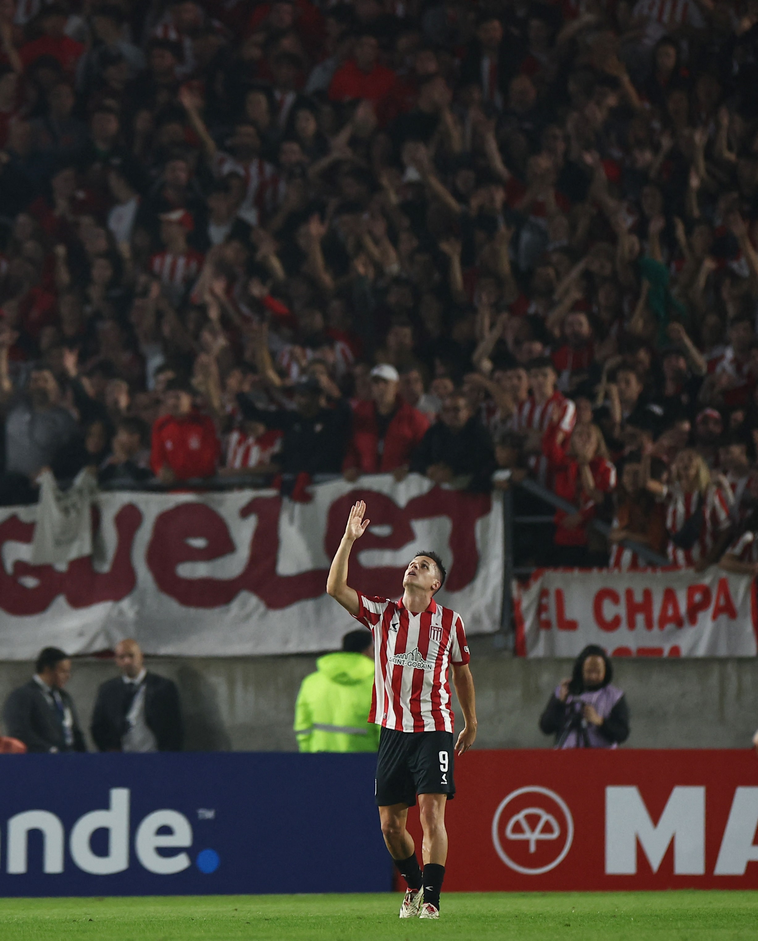 拉普拉塔大學生隊球員吉多·卡里略進球后慶祝的資料照片。拍攝於阿根廷布宜諾斯艾利斯豪爾赫·路易斯·希爾施球場,2025年4月23日。