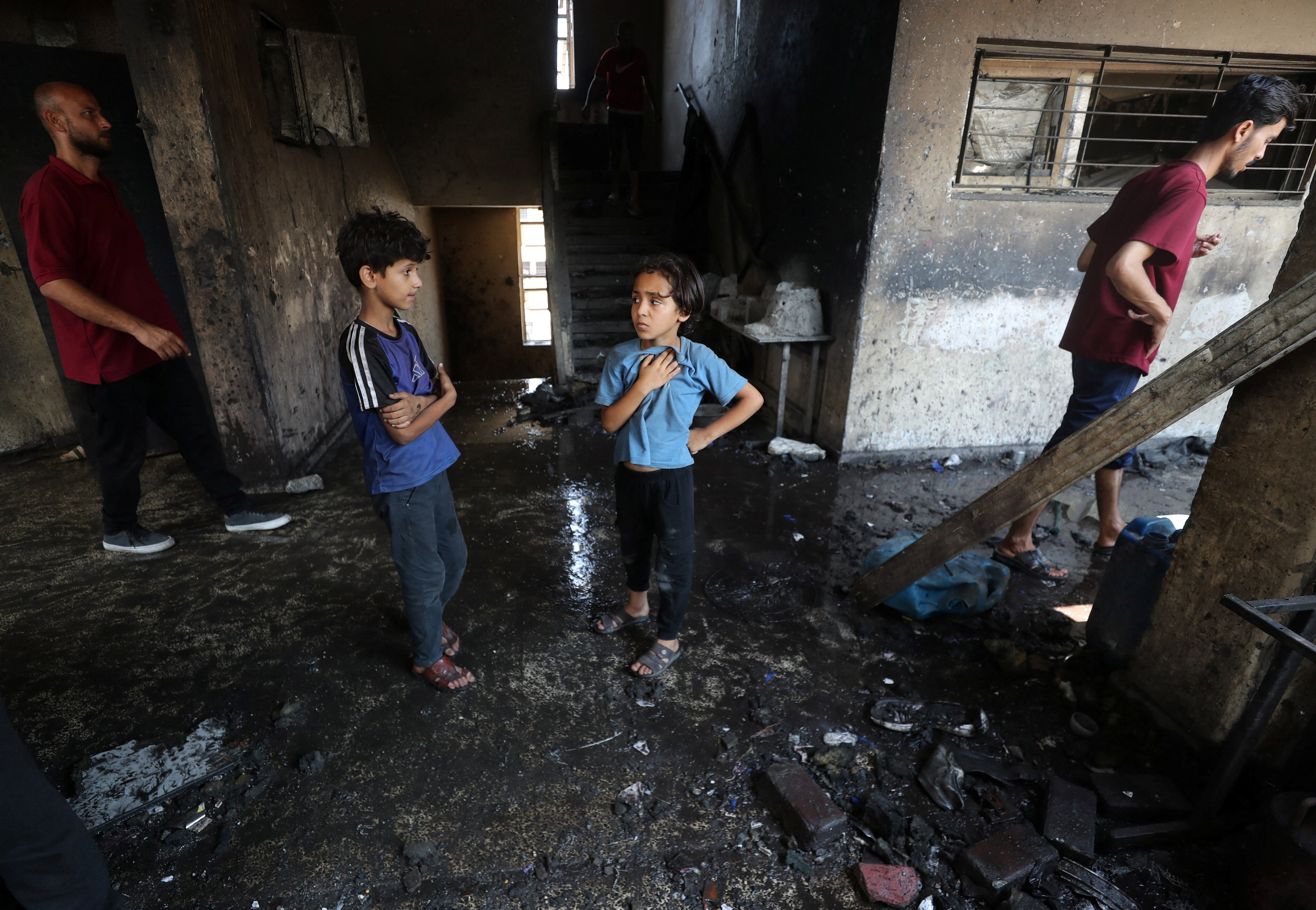 2025年7月25日,加沙城一處收容流離失所者的學校遭以色列空襲後,巴勒斯坦兒童站在現場。路透社/Mahmoud Issa/資料圖片購買授權權利,打開新標籤頁開羅,7月27日(路透社)——以色列軍方週日宣佈在加沙三個指定區域暫停軍事行動,此前不久其表示正採取多項措施緩解巴勒斯坦飛地的人道主義危機。軍方表示,暫停行動將於每日上午10點(格林尼治時間0700)至晚上8點(格林尼治時間1700)在阿爾馬瓦西、代爾巴拉和加沙城實施,直至另行通知。