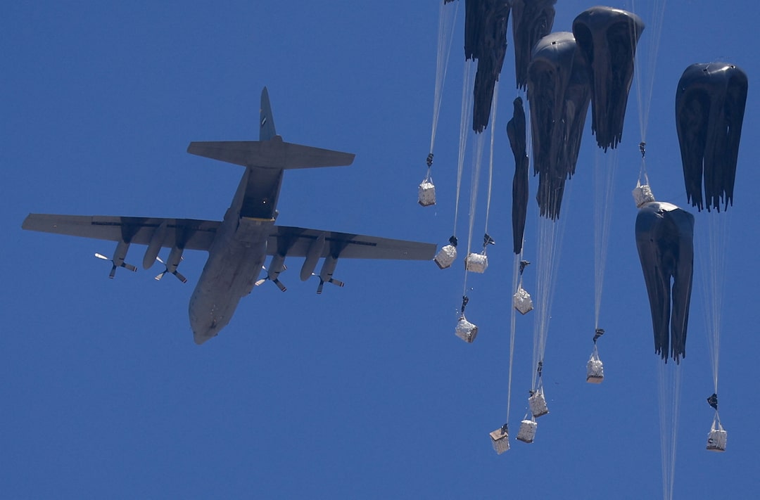 2025年7月27日從加沙地帶北部拍攝的人道主義援助物資空投場景。路透社/Dawoud Abu Alkas TPX今日圖片