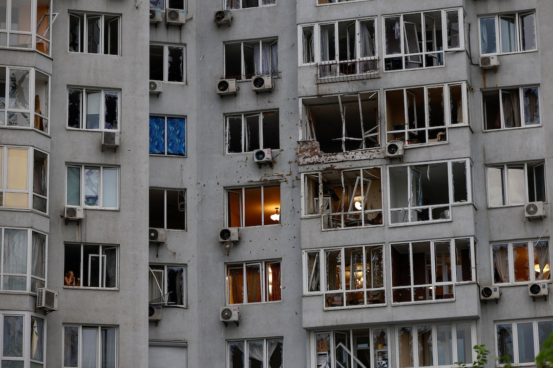 圖1/2 2025年7月28日,烏克蘭基輔,在俄羅斯對烏克蘭的襲擊中,一棟公寓樓在俄羅斯無人機襲擊中受損的景象。路透社/瓦倫丁·奧吉連科