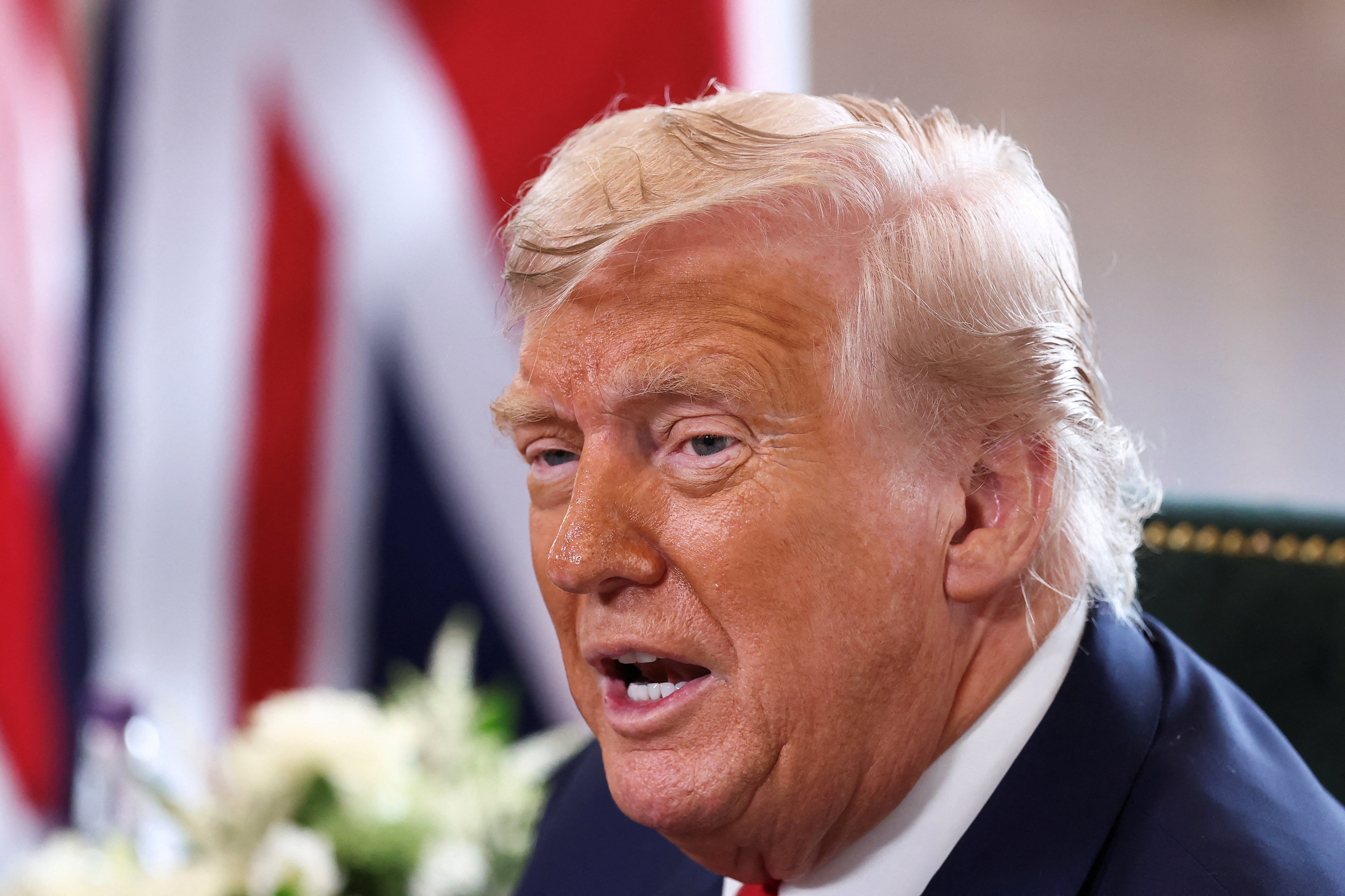 美國總統唐納德·特朗普與英國首相基爾·斯塔默(未在畫面中)於2025年7月28日在英國蘇格蘭特倫伯裏的特朗普坦伯利高爾夫球場舉行雙邊會晤。路透社/伊芙琳·霍克斯坦 購買授權 權利, 打開新標籤頁特倫伯裏,7月28日(路透社)- 美國總統唐納德·特朗普因俄羅斯對烏克蘭持續激烈的戰爭而對其施壓。由於停火前景渺茫,美國可能在不到兩週內對俄羅斯貿易伙伴實施制裁。“我將從今天起設定一個新的期限,大約十到十二天,“特朗普週一在蘇格蘭與英國首相基爾·斯塔默會晤時表示。“沒有理由再等待。我們根本看不到任何進展。“他對普京感到失望。