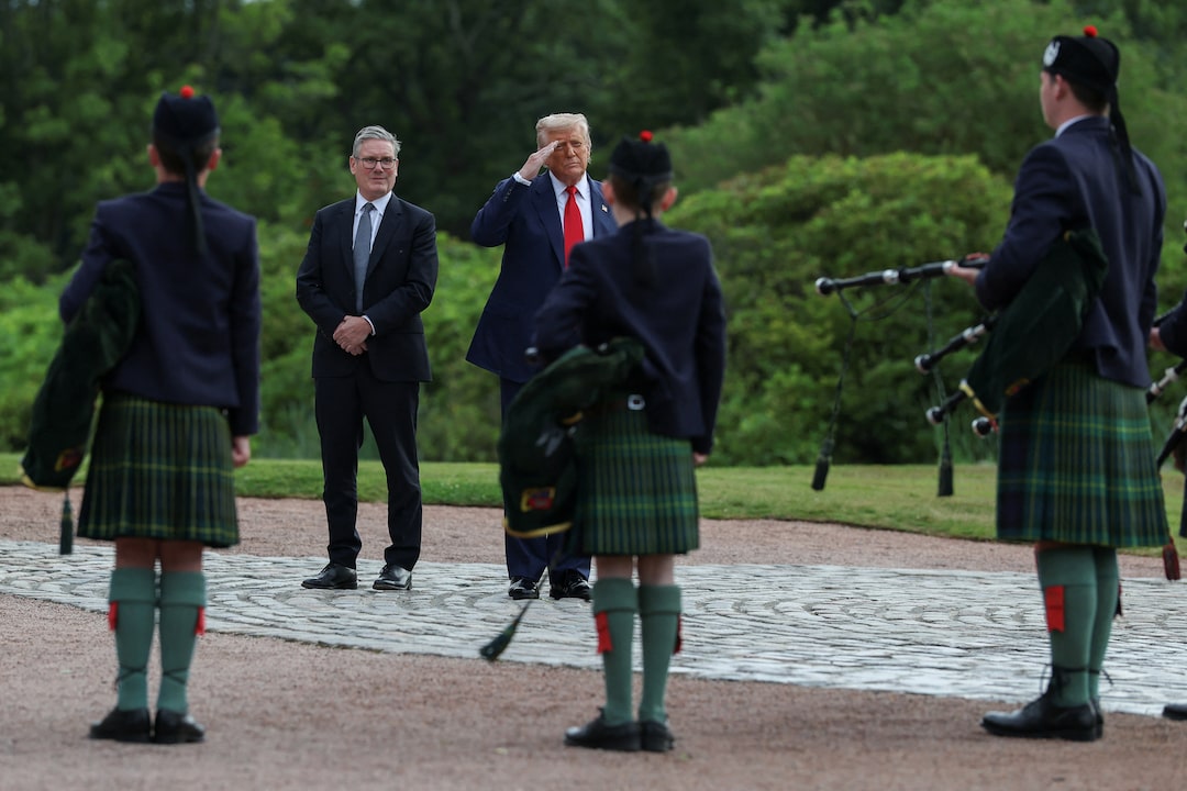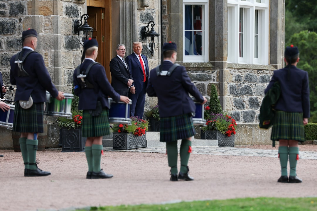 6項中的第1項 美國總統唐納德·特朗普於2025年7月28日在英國蘇格蘭坦伯裏特朗普坦伯裏高爾夫球場會晤英國首相基爾·斯塔默。路透社/伊芙琳·霍克斯坦 TPX每日圖片
