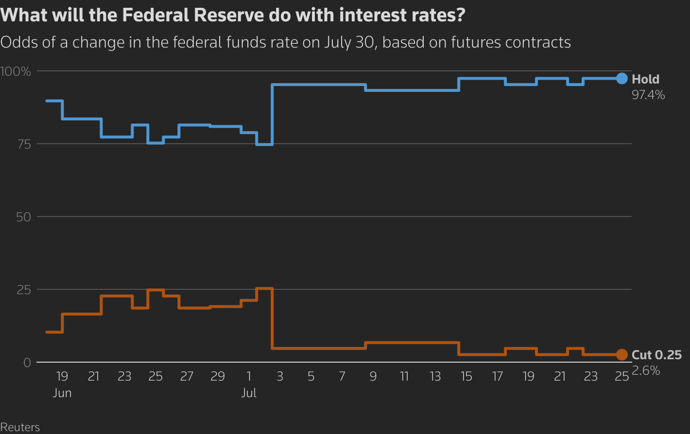 基於期貨合約的7月30日聯邦基金利率變動概率