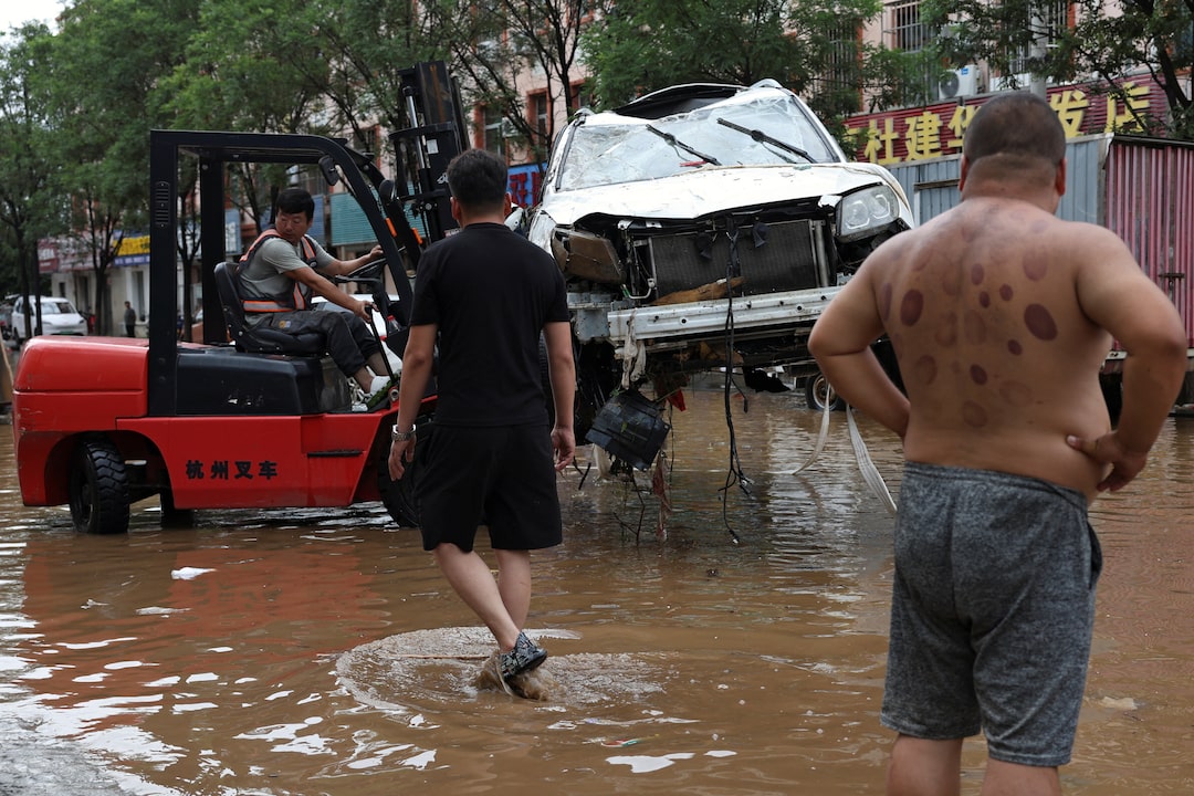 “洪水瞬間就湧進來,根本來不及反應,“33歲的翟女士説。她在已成災區的密雲經營雜貨店,當地隨處可見坍塌的橋樑、扭曲的汽車和斷裂的管道。