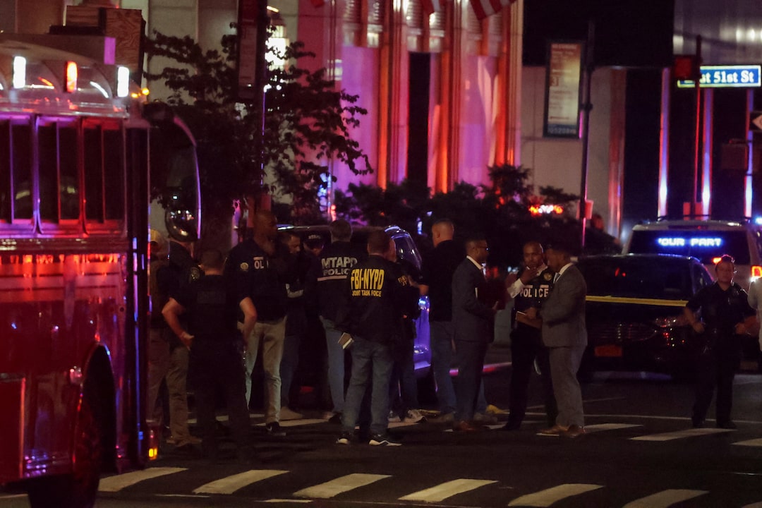 圖1/4 2025年7月28日,美國紐約市曼哈頓區發生槍擊事件,警察在街頭警戒。路透社/Jeenah Moon