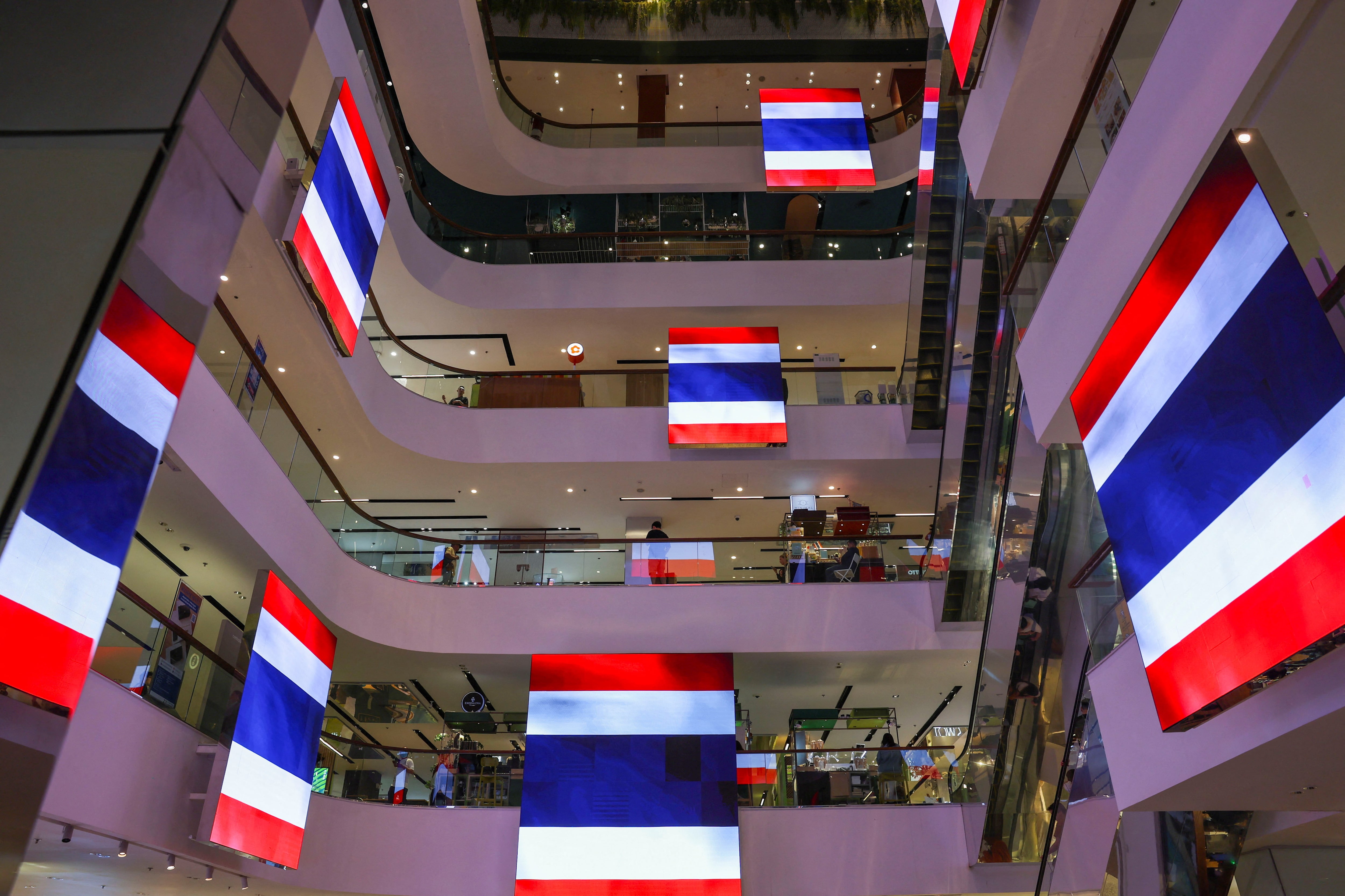 7月28日,泰國曼谷一家購物中心內,數字屏幕顯示着支持國家的泰國國旗。當天柬埔寨和泰國領導人同意自午夜起停火,試圖結束五天交戰——這是兩國十餘年來最致命的衝突。購買授權許可,打開新標籤頁閲讀更多路透曼谷7月29日電 - 泰國財政部長週二表示,在與柬埔寨的五天邊境衝突後,泰國初步估算人員疏散和財產損失成本超過100億泰銖(3.0788億美元),預計最終經濟影響將更為嚴重。財政部長披猜·春哈維拉告訴記者,政府正在準備250億泰銖(7.71億美元)的初步預算以減輕影響。