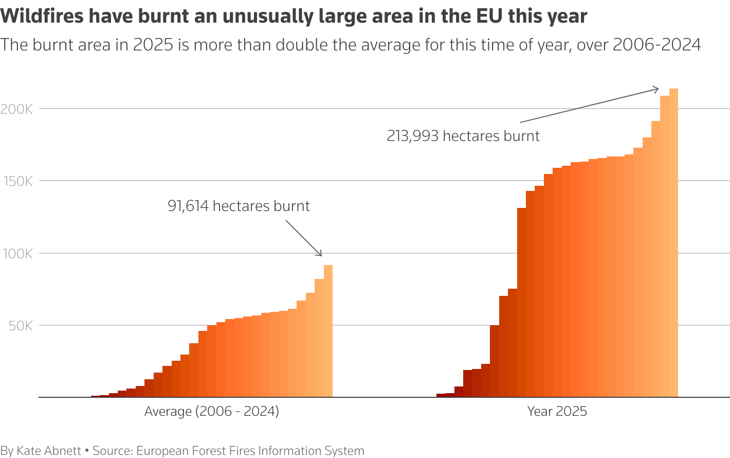 今年歐盟境內野火過火面積異常龐大