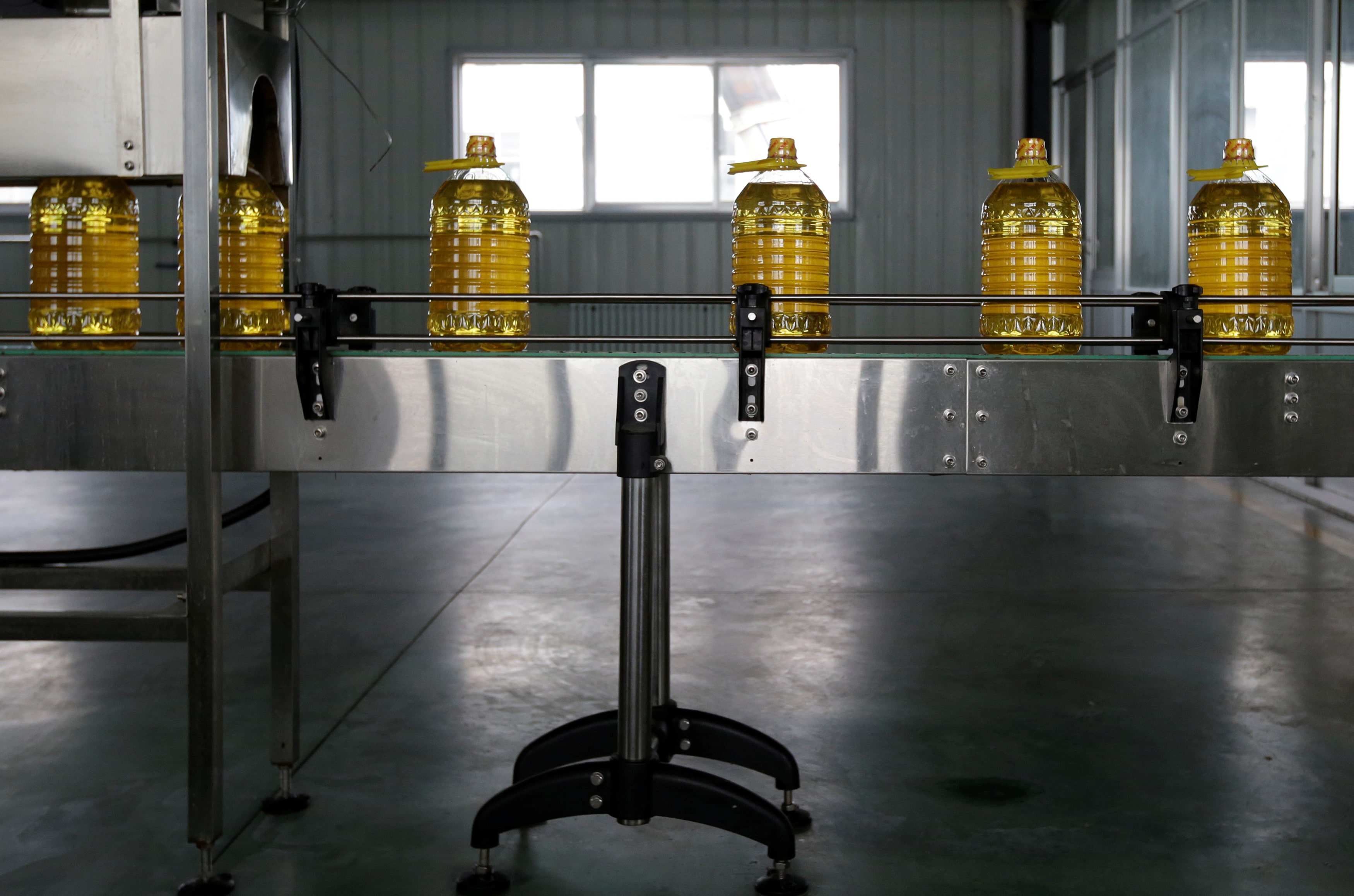 2018年7月4日,中國山東省曲阜市某工廠生產線上擺放的豆油瓶。路透社/Jason Lee/檔案照片購買授權許可,打開新標籤頁路透社孟買7月29日電 - 四名貿易消息人士稱,印度進口商罕見地從中國購買了創紀錄的15萬噸豆油,因供應過剩促使中國壓榨商以低於印度傳統南美供應商的價格出售。