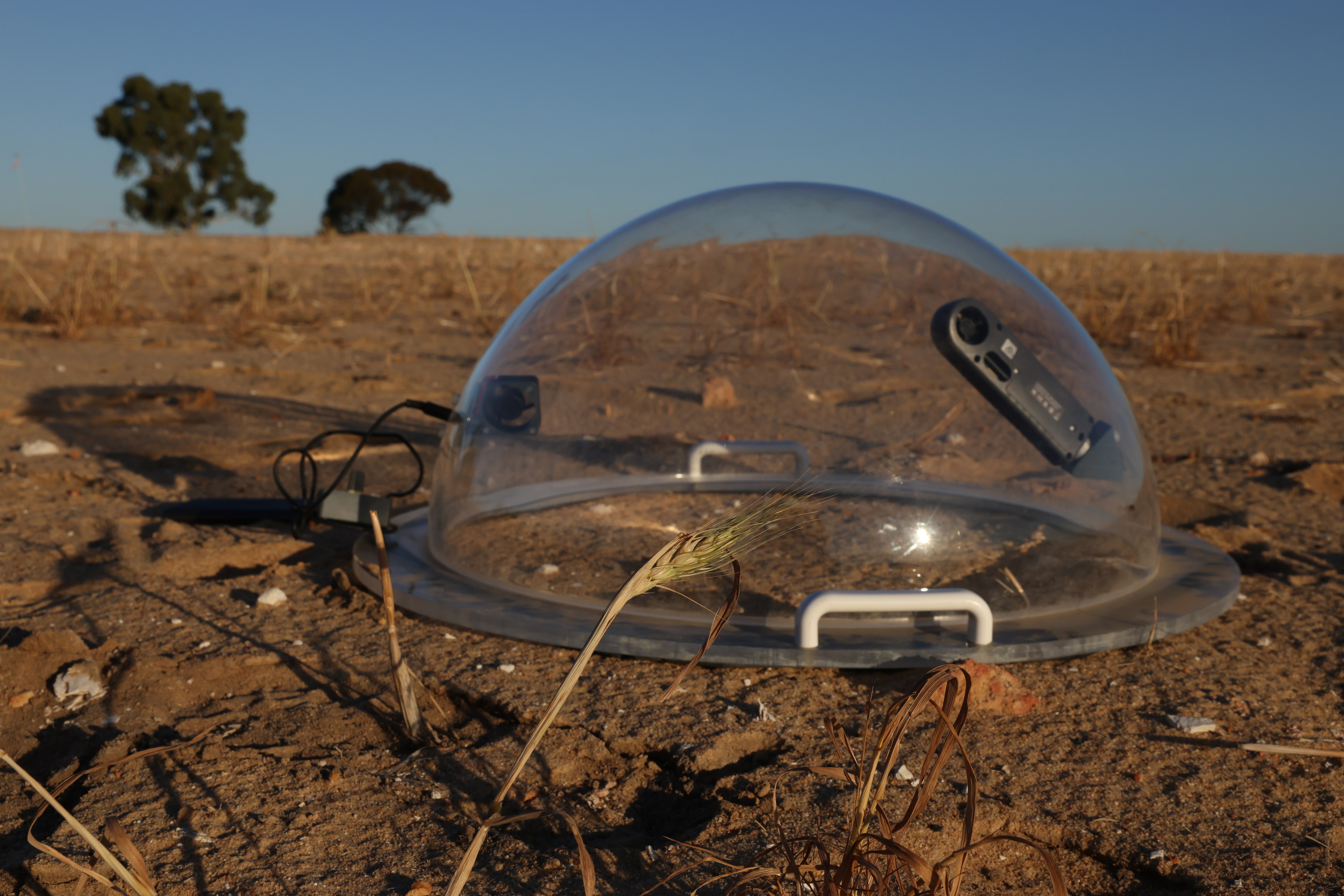 西澳大利亞州格拉斯特谷附近的一個農場,一台設備正在測試經過土壤改造後的蒸發水分流失情況。路透社/霍莉·亞當斯利貝克表示,用鬆土機翻耕田地可使小麥產量提高36%至50%。這台機器花費了22萬澳元(143,396美元)。“對於一把高級鏟子來説有點貴,“他説,但它"挖出了利潤”。