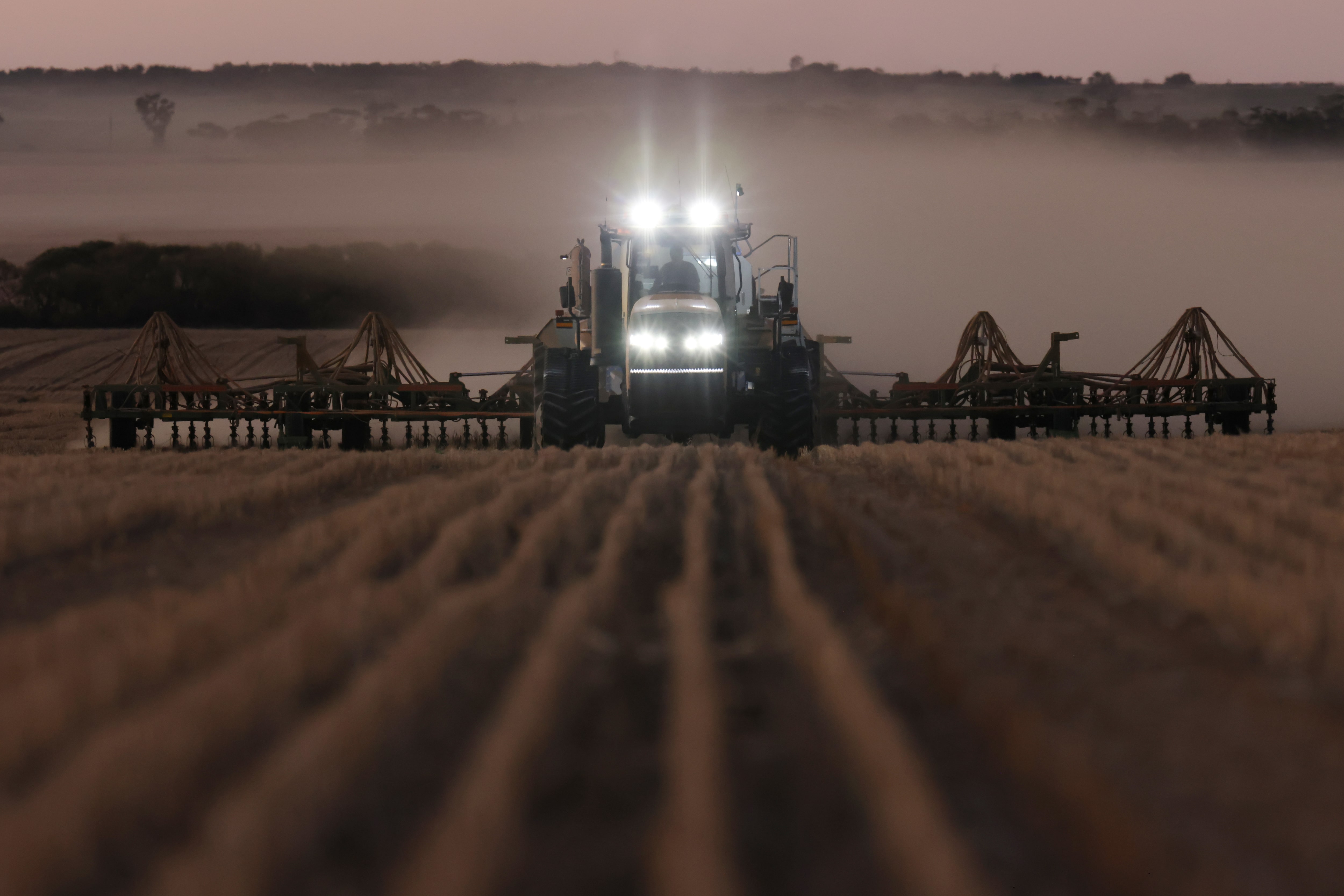 西澳大利亞州本卡賓附近,一名播種者正在播種小麥。播種通常從四月中旬開始,比上一代人早了兩到四周。路透社/霍莉·亞當斯