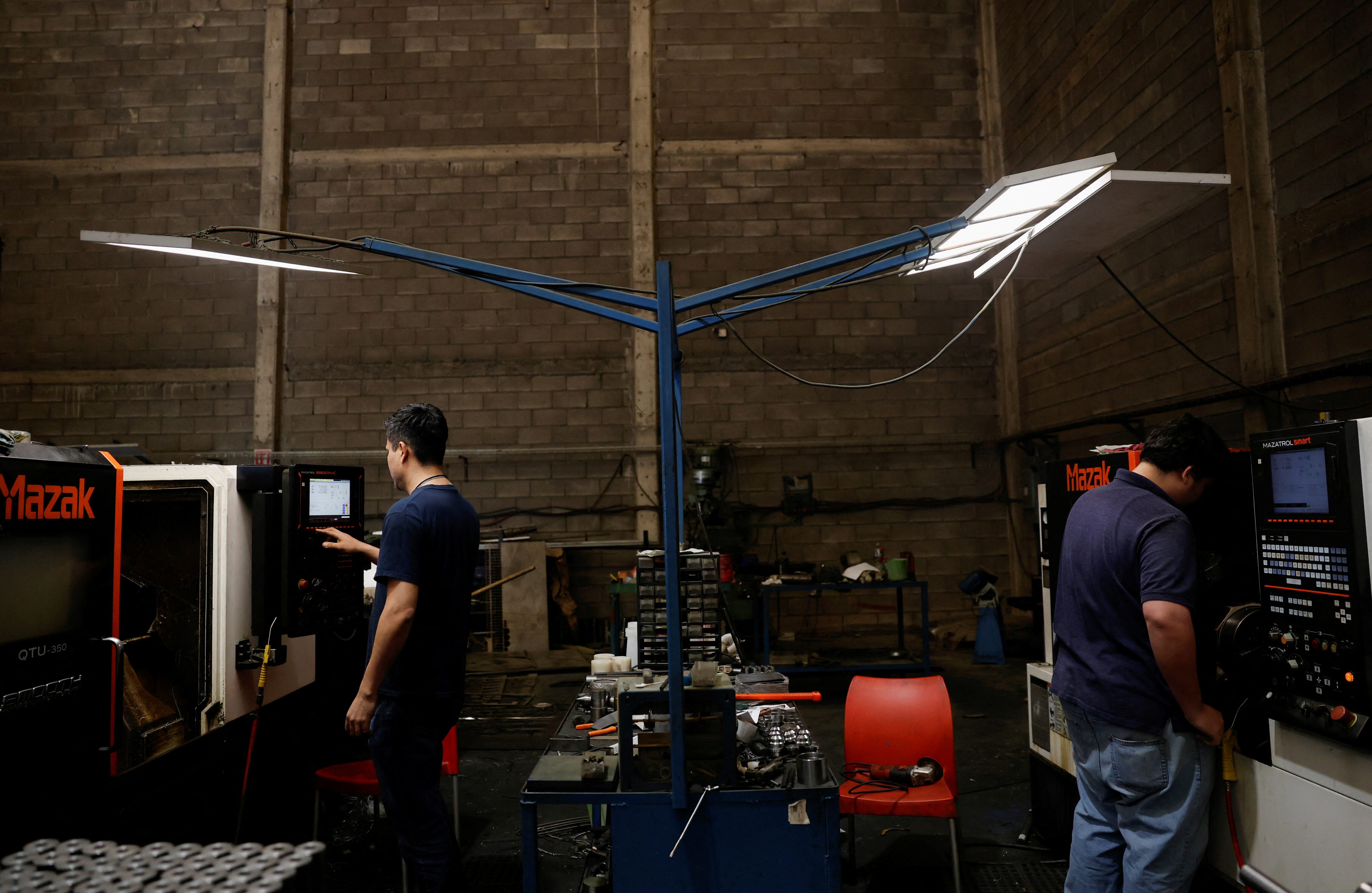 資料圖片。在墨西哥阿波達卡,面對美國總統唐納德·特朗普即將對鋼鐵和鋁徵收關税,一家應用於工業的金屬機械零件工廠的工人們。2025年3月11日。路透社/Daniel Becerril 購買授權 許可,打開新標籤頁墨西哥城,7月30日(路透社)——墨西哥經濟在第二季度加速增長步伐,超出預期,受到製造業和服務業改善的推動,彌補了農業活動的疲弱表現。