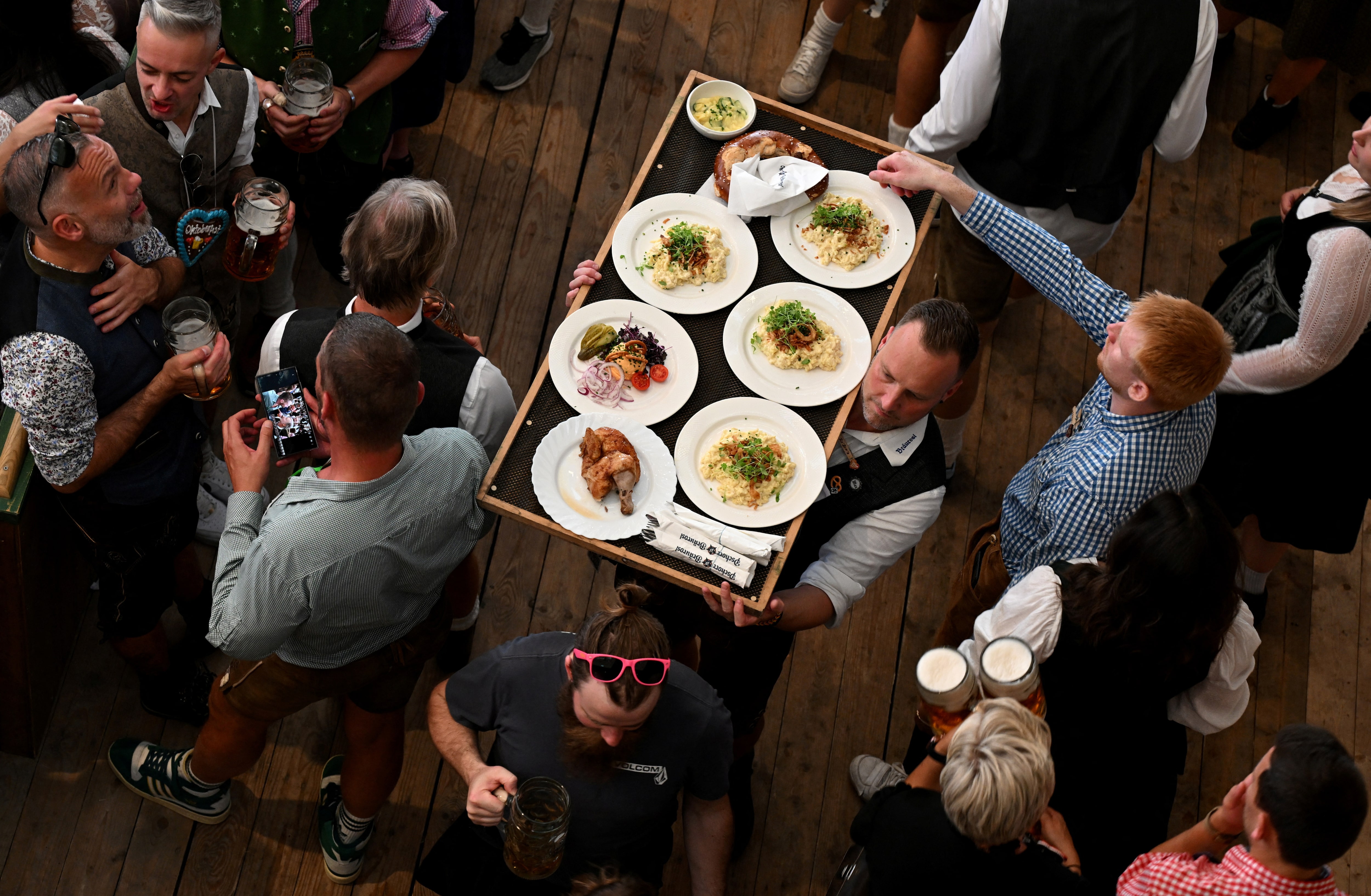 2024年9月21日,德國慕尼黑,服務員在世界上最大的啤酒節——第189屆慕尼黑啤酒節正式開幕當天端送食物。路透社/Angelika Warmuth/檔案照片購買授權許可,打開新標籤頁路透社柏林7月31日電 - 德國聯邦統計局週四公佈的初步數據顯示,7月份德國通脹率同比降至1.8%,降幅超出預期。