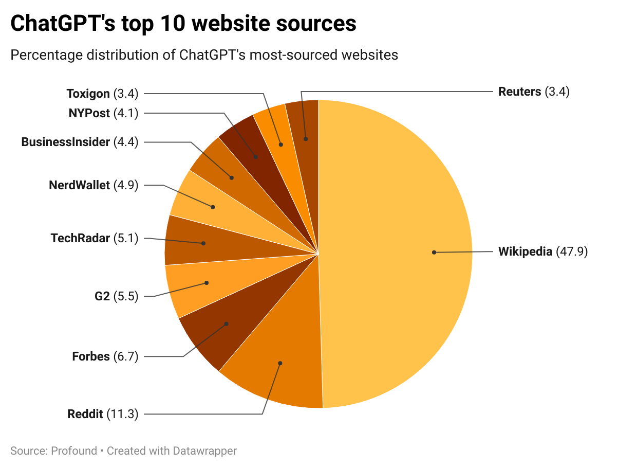 根據Profound分析,ChatGPT的十大信息來源網站 根據Profound分析,ChatGPT的十大信息來源網站