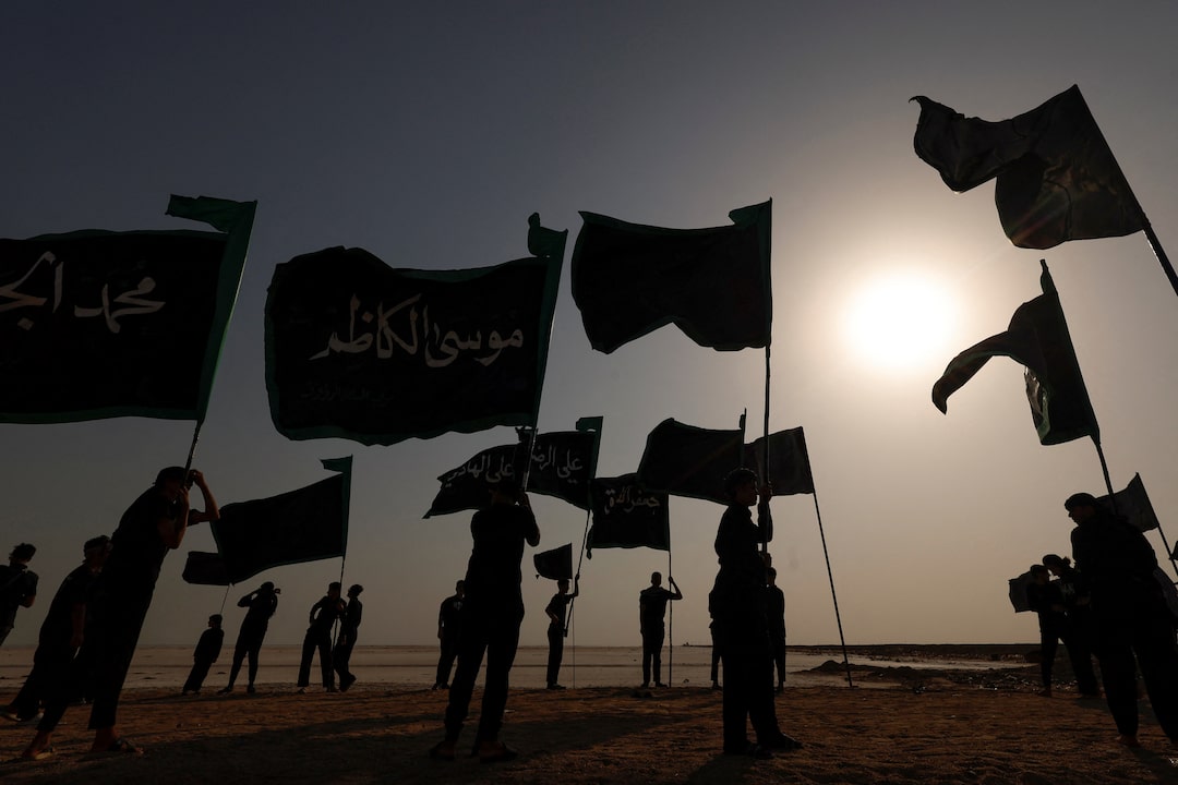 廣告·繼續滾動閲讀卡里姆從最遠的起點——伊拉克南部的Ras al-Bisha出發。他站在波斯灣的沙地上,隨後向北朝聖城卡爾巴拉進發,那裏是侯賽因殉難之地,如今矗立着他的聖陵。這段旅程將持續22天。對58歲的卡里姆而言,開端令人疲憊。伊拉克南部沙漠與沼澤地帶——或是從內陸吹向海洋的灼熱風沙——早已將他籠罩,連他旅程前半段攜帶的黑旗也被風撕扯得破損不堪。