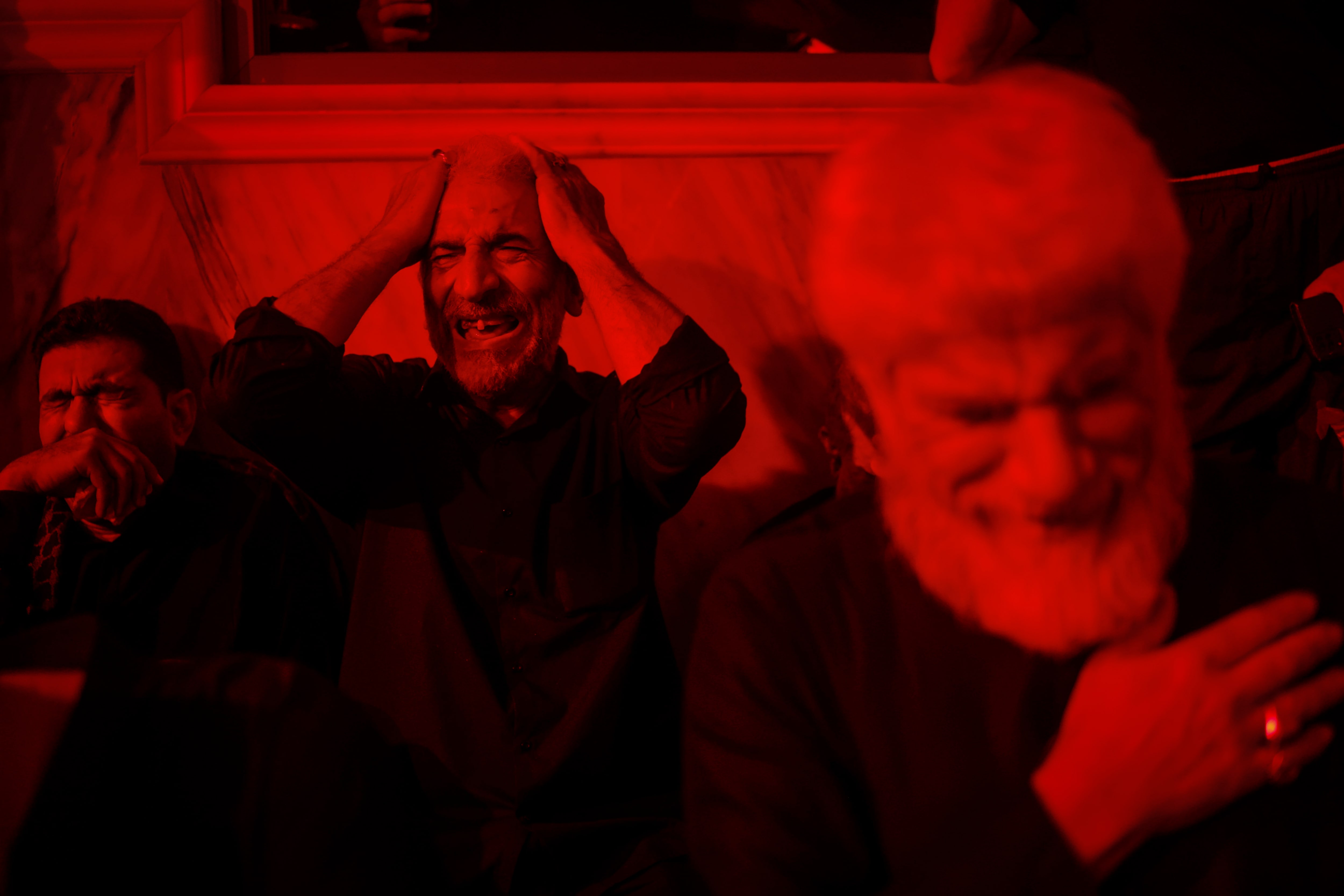2025年8月8日,伊拉克納傑夫,什葉派穆斯林朝聖者在阿巴因聖日前夕的哀悼儀式上反應。路透社/Alaa al-Marjani