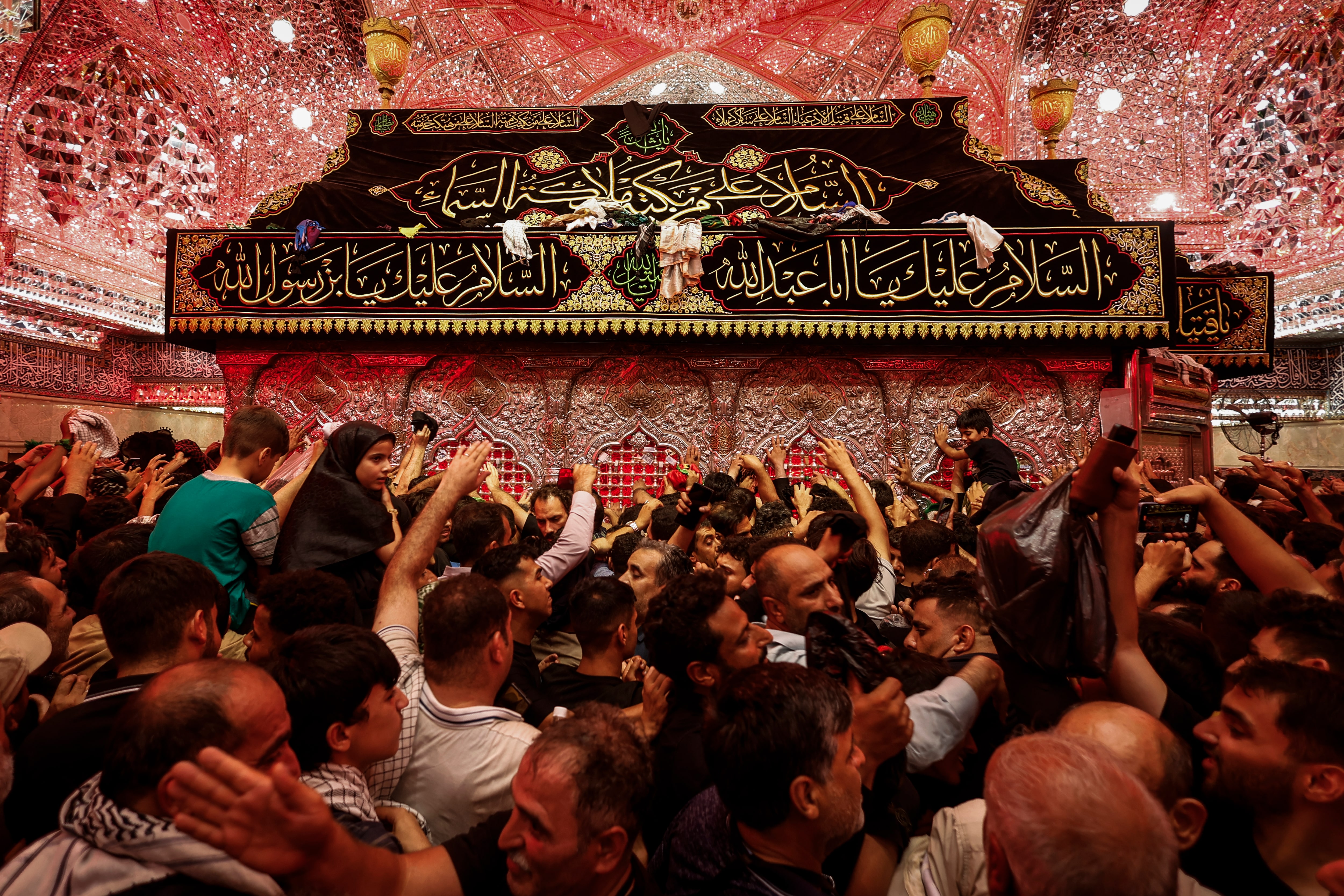 當朝聖接近尾聲,卡爾巴拉城和侯賽因聖陵的出現令人精神振奮。他擠過蜂擁在聖陵周圍的其他朝聖者。這座鑲金圓頂的清真寺內設有裝飾華麗的入口、木製拱門和玻璃幕牆,每年接待超過2000萬朝聖者。