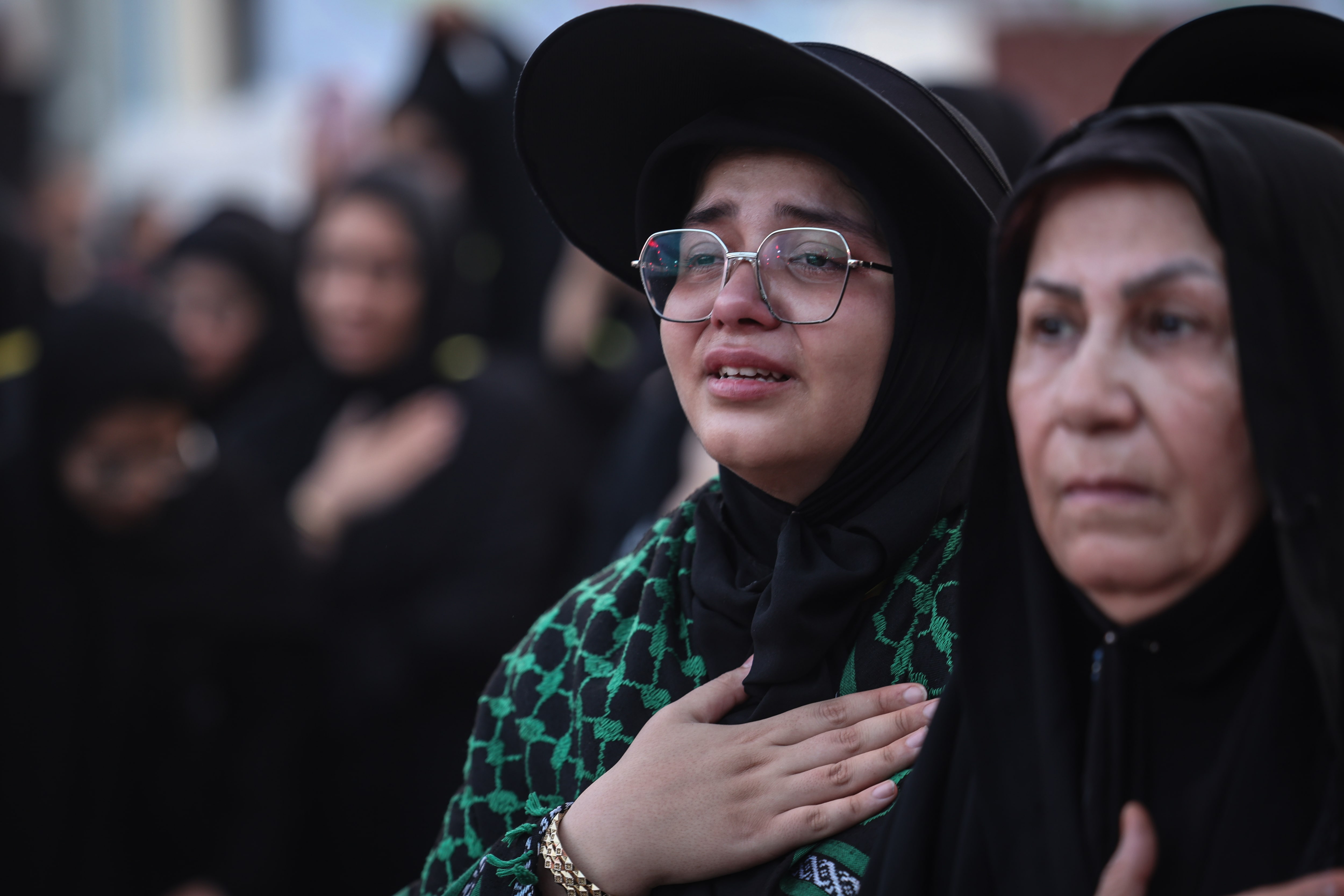 2025年8月10日,伊拉克聖城卡爾巴拉,一位什葉派穆斯林婦女在阿爾巴因聖日前夕的哀悼儀式上情緒激動。路透社/Alaa al-Marjani