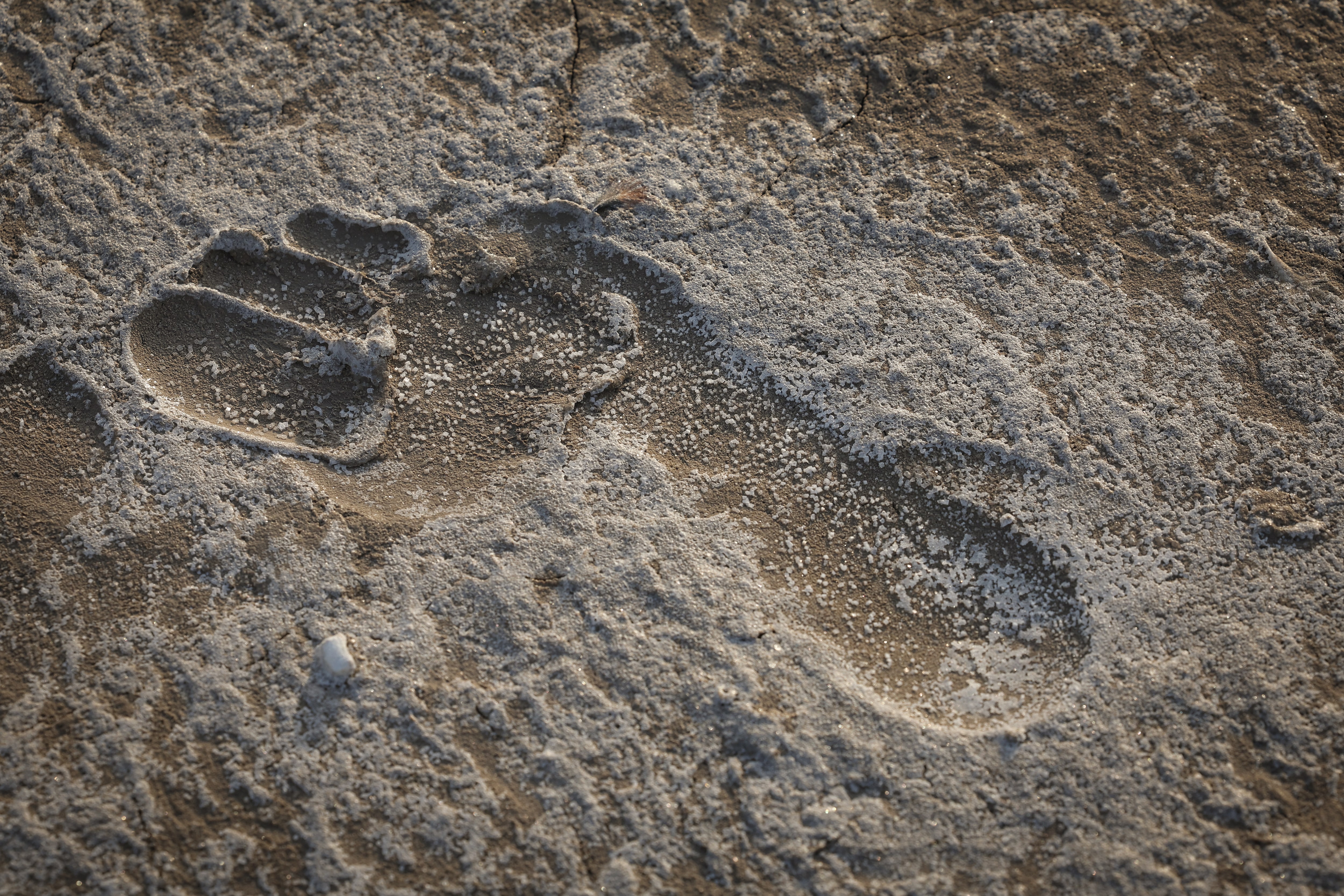 2025年7月21日,伊拉克巴士拉,什葉派穆斯林朝聖者從伊拉克最南端的Ras al-Bisha出發,開始朝聖之旅,前往聖城卡爾巴拉,為即將到來的什葉派宗教儀式阿巴因做準備,海岸上留下了一串腳印。路透社/Alaa al-Marjani