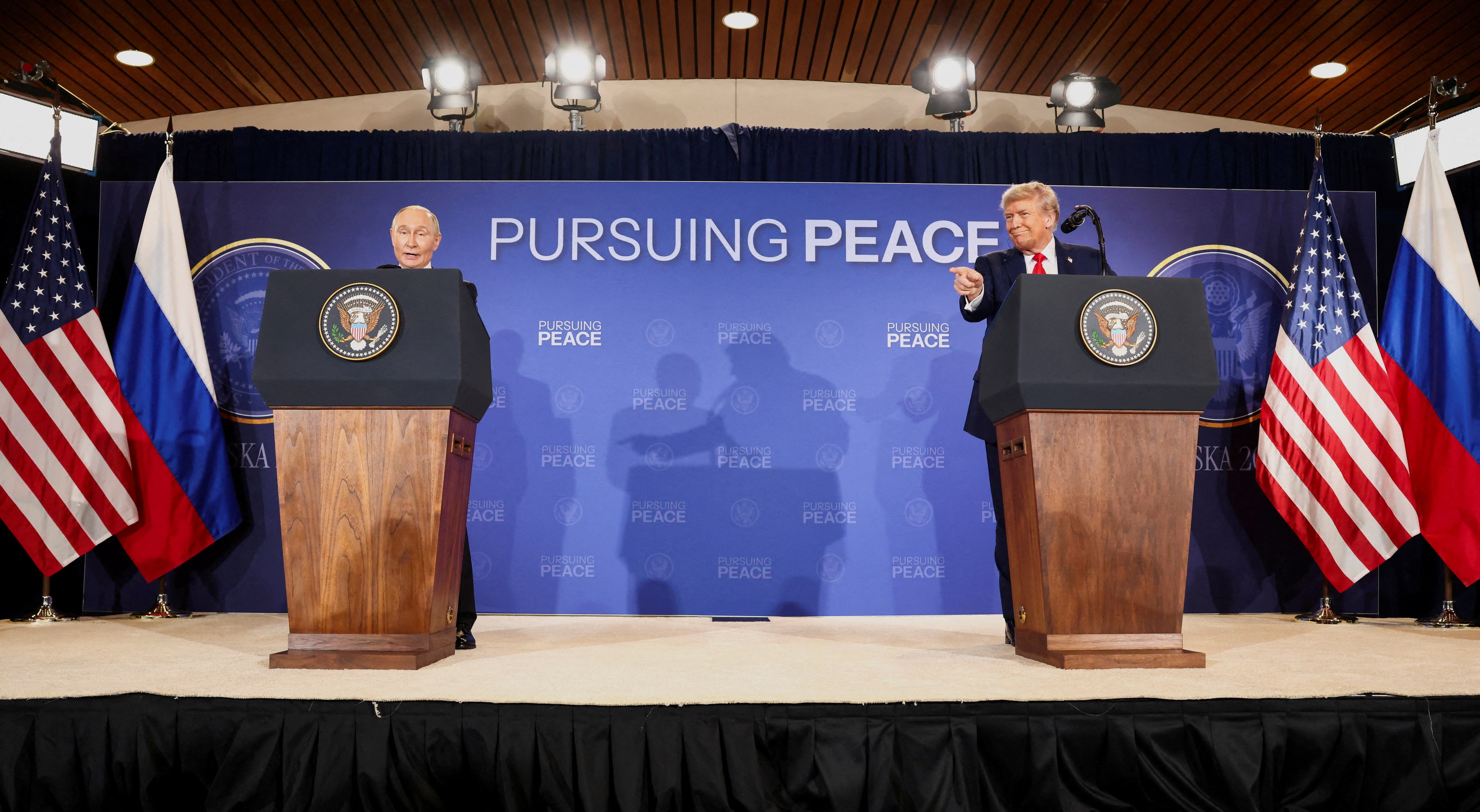 美國總統唐納德·特朗普與俄羅斯總統弗拉基米爾·普京在美國阿拉斯加安克雷奇埃爾門多夫-理查森聯合基地舉行會談後召開新聞發佈會,商討結束戰爭事宜。2025年8月15日。路透社/Kevin Lamarque 購買授權 許可,打開新標籤頁安克雷奇,8月15日(路透社)- 美國總統唐納德·特朗普週五表示,在與俄羅斯總統弗拉基米爾·普京在阿拉斯加舉行的會晤中取得了"重大進展"。
