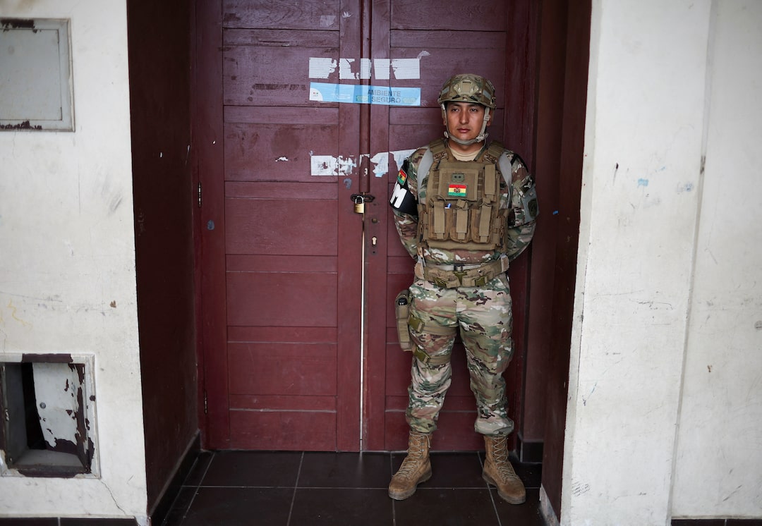 圖1/5:2025年8月16日,玻利維亞埃爾阿爾託,一名男子在8月17日大選前攜帶選舉材料走出投票站。路透社/Pilar Olivares