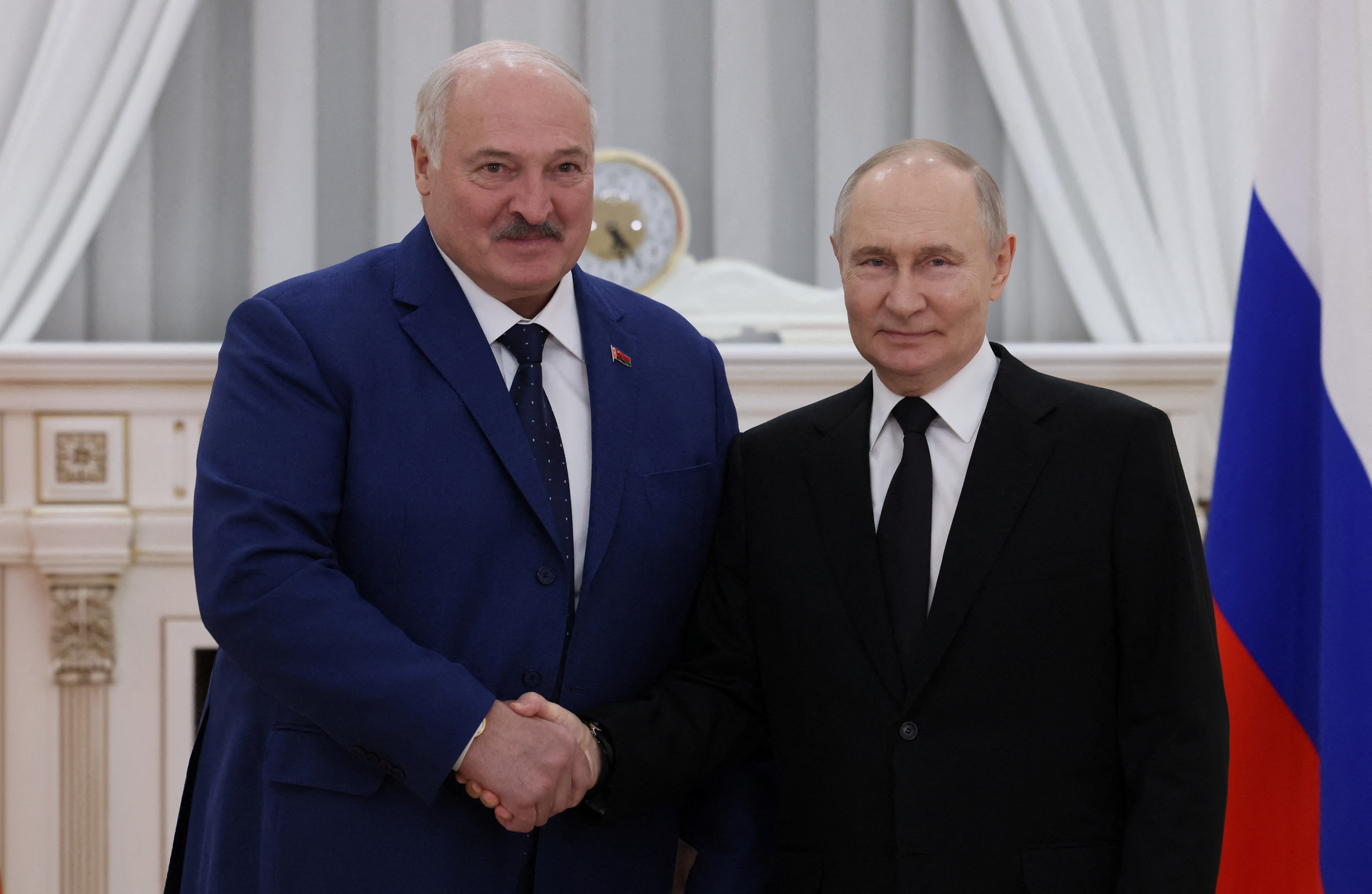 俄羅斯總統弗拉基米爾·普京於2025年4月29日在俄羅斯與白俄羅斯總統亞歷山大·盧卡申科會晤時握手。圖片由斯普特尼克通訊社提供,路透社通過第三方獲取購買許可權利,打開新標籤頁莫斯科,2025年8月17日(路透社)——俄羅斯總統弗拉基米爾·普京週日與白俄羅斯和哈薩克斯坦領導人舉行會談,向他們通報了與美國總統唐納德·特朗普舉行的峯會結果,克里姆林宮認為這次峯會是朝着烏克蘭和平邁出的重要一步。