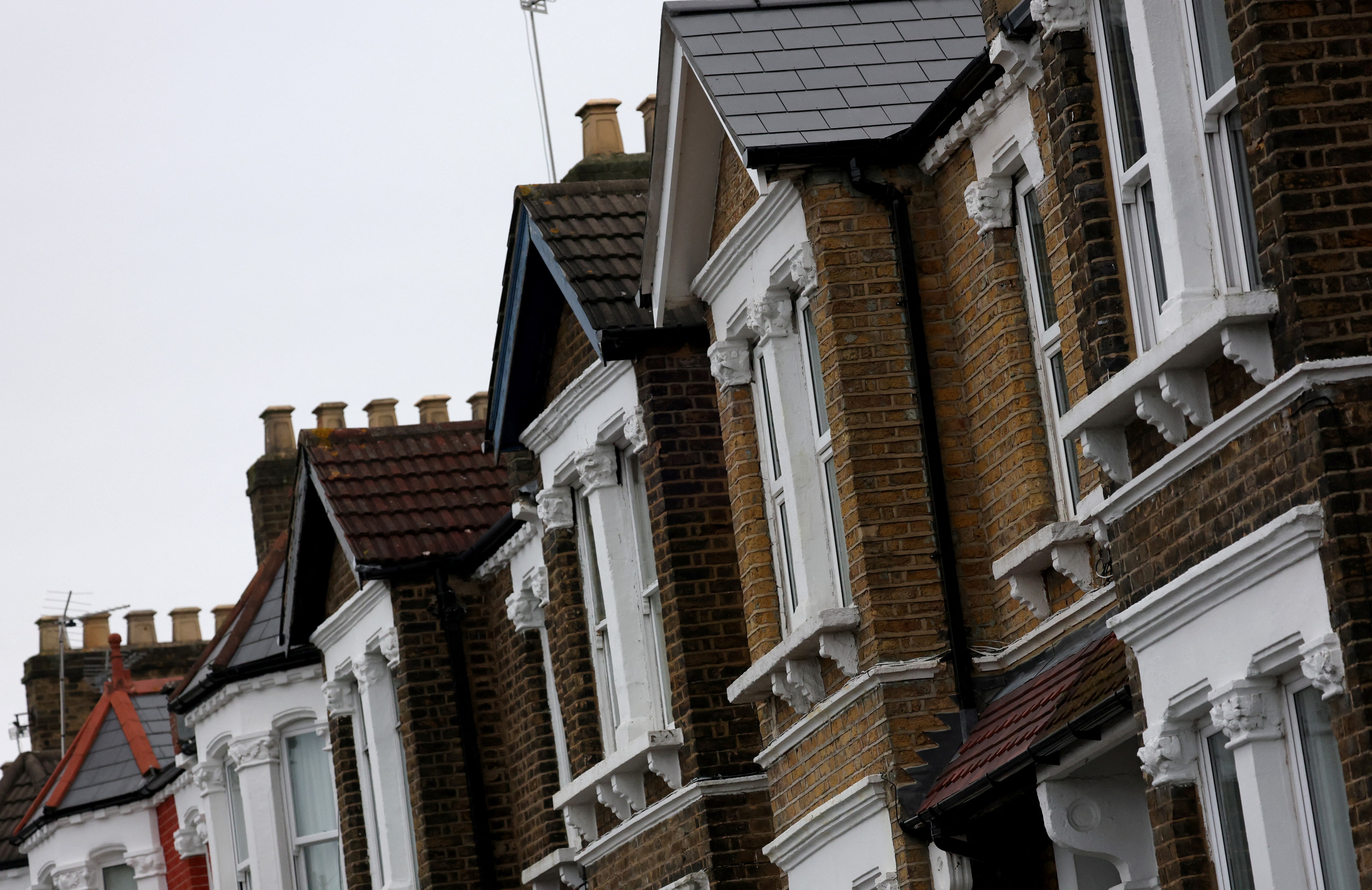2025年1月23日,英國倫敦一排住宅的景觀。路透社/漢娜·麥凱/資料圖片購買授權權利,打開新標籤頁路透倫敦8月18日電 - 一項調查顯示,截至8月中旬的四周內,英國新掛牌房屋和公寓的要價有所下降,但降幅較前兩個月有所收窄,且7月份的銷售量達到2020年以來同期的最高水平。