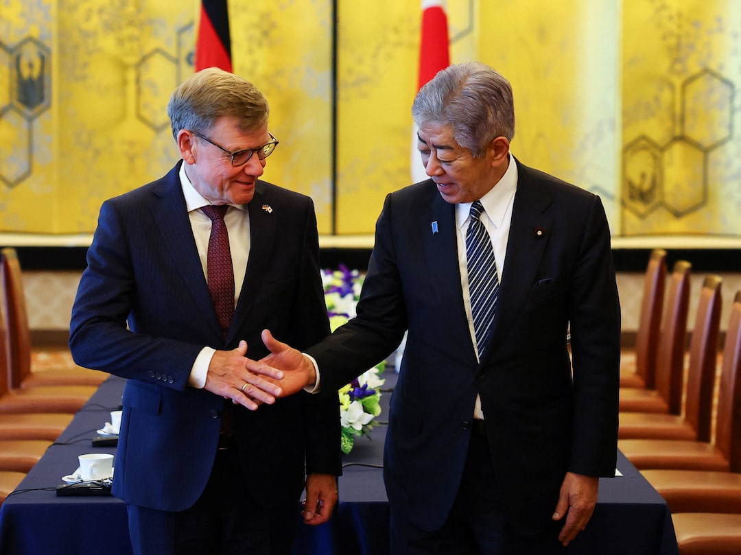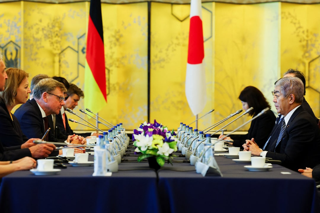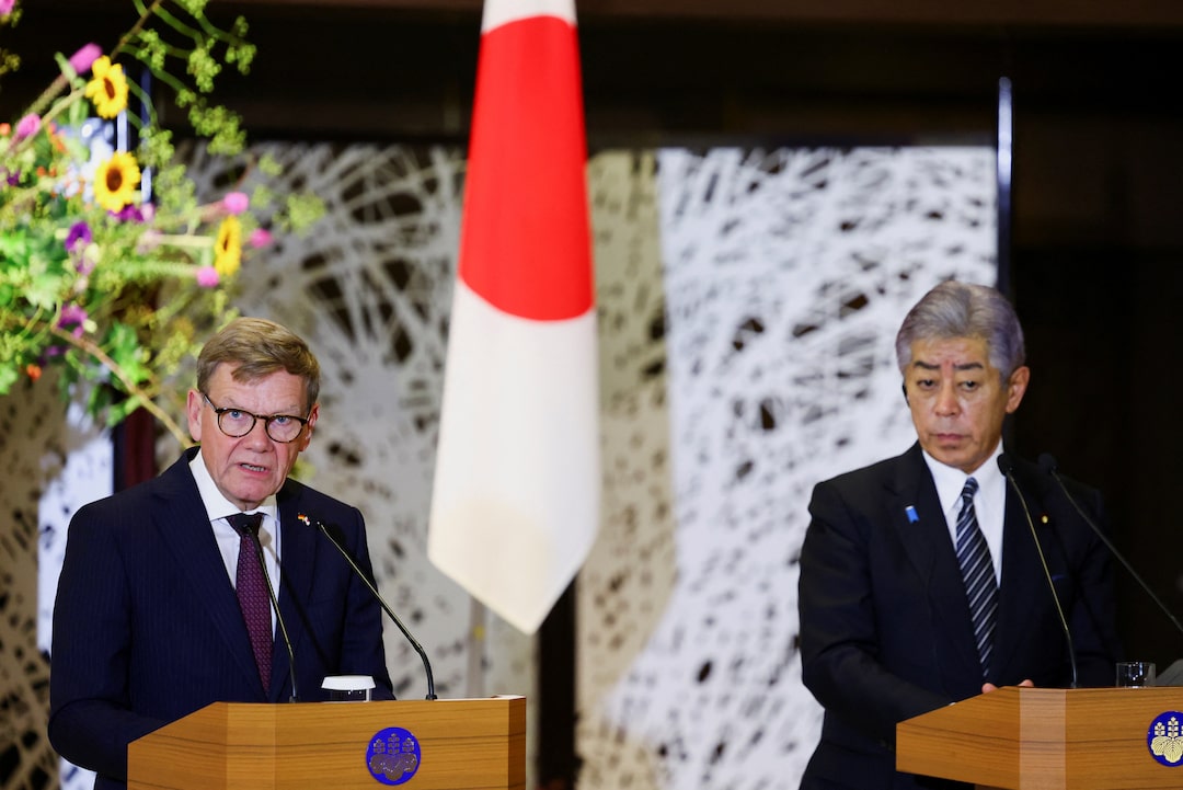 圖1/4:2025年8月18日,德國外交部長約翰·瓦德普爾在日本東京會晤日本外務大臣巖谷武。路透社/Kim Kyung-Hoon