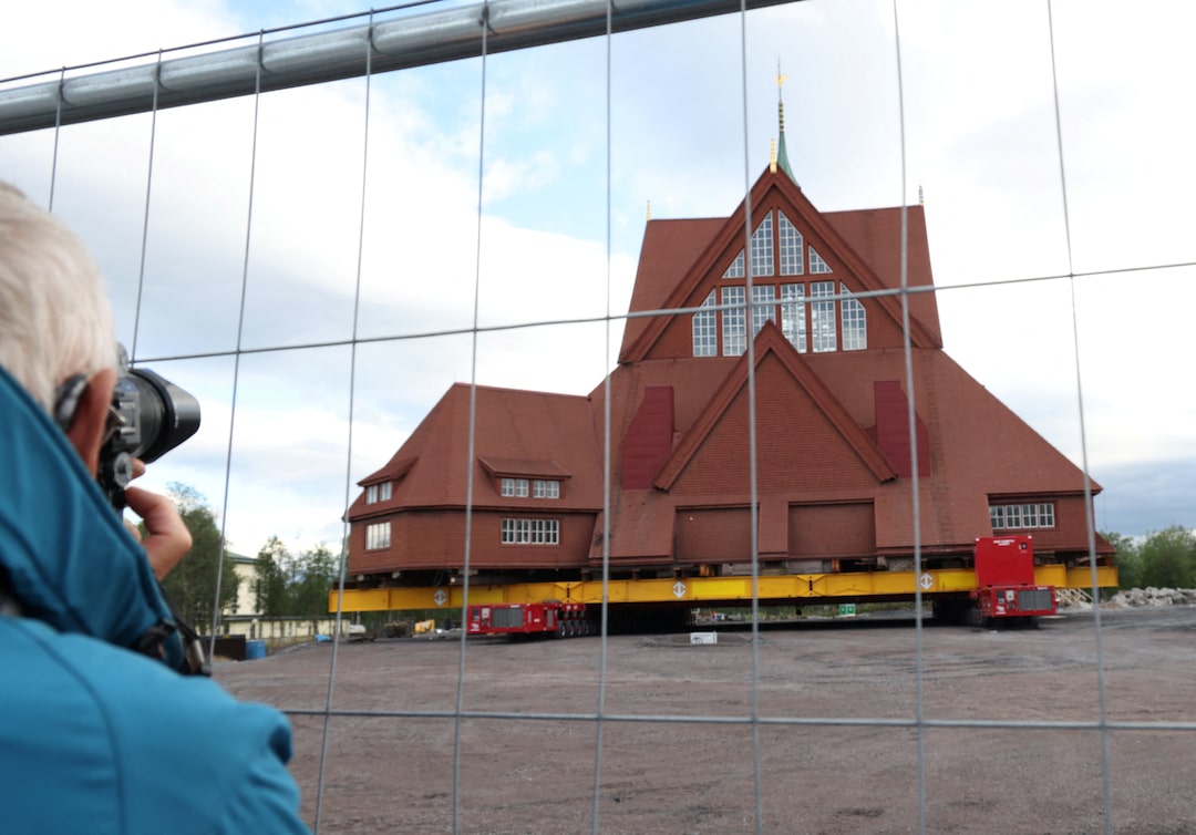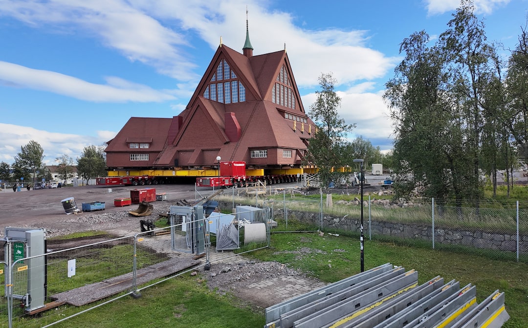 工人們已將這座重達600噸、擁有113年曆史的教堂從地基上頂起,並安置在一輛特製的拖車上——這是為期30年的拉普蘭城市搬遷項目的一部分,該項目涉及數千人和建築物的遷移。