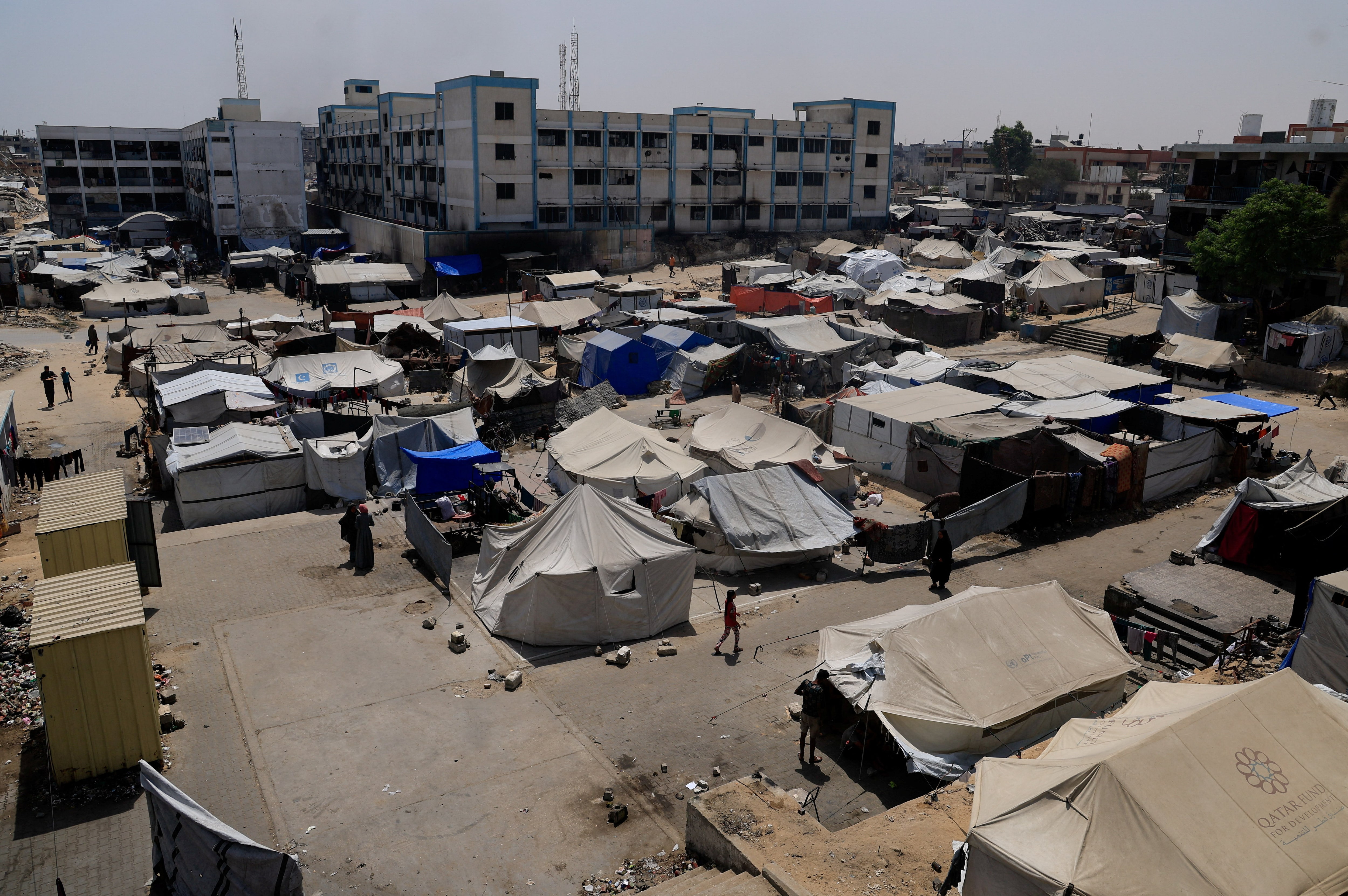 2025年8月19日,在加沙地帶南部汗尤尼斯,因以色列軍事進攻而流離失所的巴勒斯坦人在聯合國近東救濟工程處學校避難。路透社/Hatem Khaled 購買授權 權利,打開新標籤頁8月19日 - 哈馬斯週一接受的加沙停火提案——預計以色列將在本週末前作出回應——包括60天休戰、分階段釋放人質、以色列軍隊從加沙部分地區撤出以及討論結束衝突。調解方卡塔爾的一名發言人週二表示,該協議與華盛頓今年早些時候提出的提案几乎完全相同。哈馬斯在7月拒絕了該協議。
