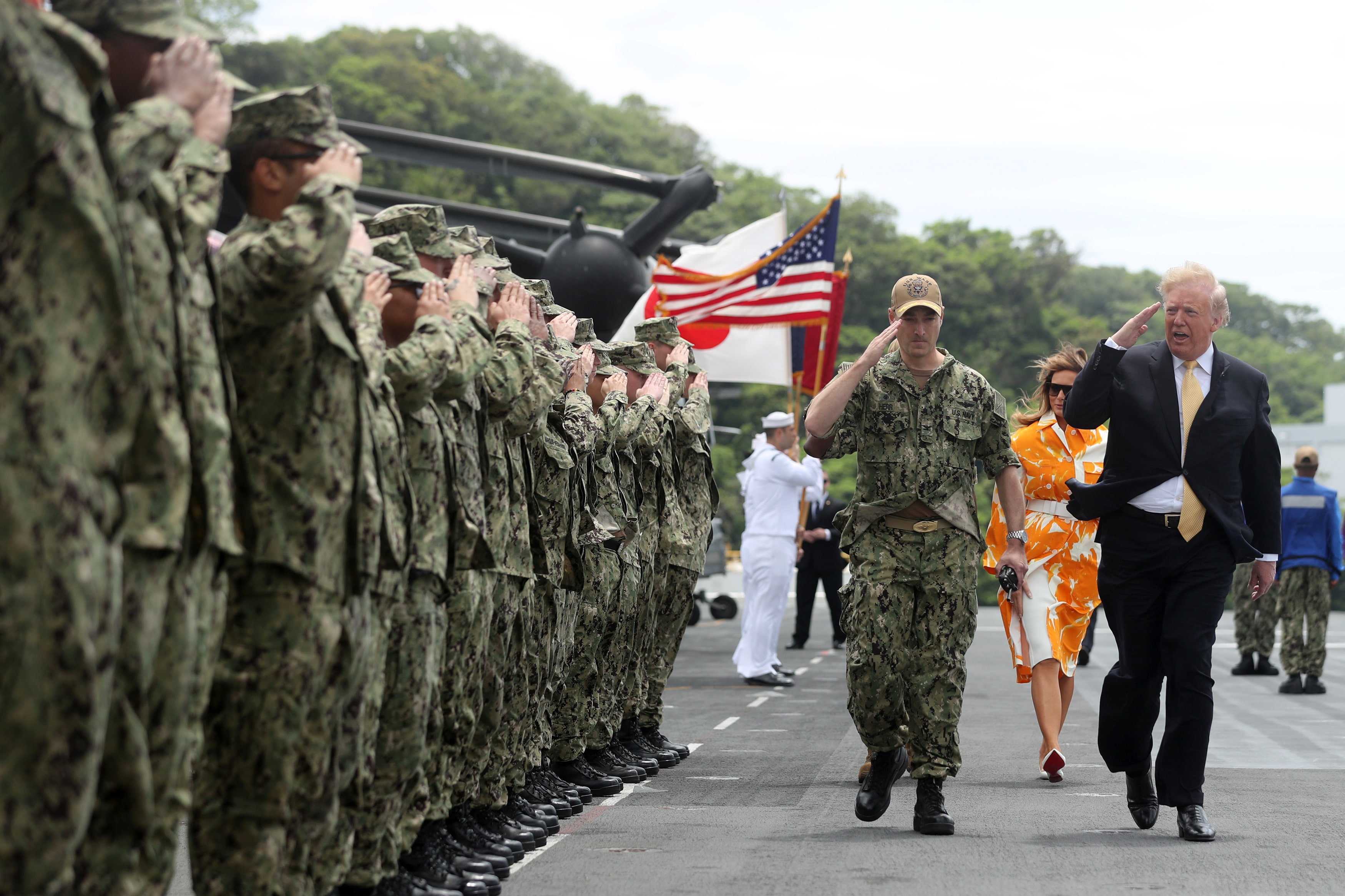 2019年美軍在日本橫須賀基地拍攝特朗普總統與第一夫人梅拉尼婭。隨着外界對美國盟友承諾的質疑聲起,特朗普及其國家安全幕僚多次表示將恪守對亞洲盟友的承諾。路透社/Athit Perawongmetha/Pool作為美國數十年來在太平洋地區主導地位的兩大支柱,日本和韓國態度的轉變源於盟友對華盛頓安全承諾信任度的持續下降,尤其是對美國是否會在衝突中施以援手的疑慮。