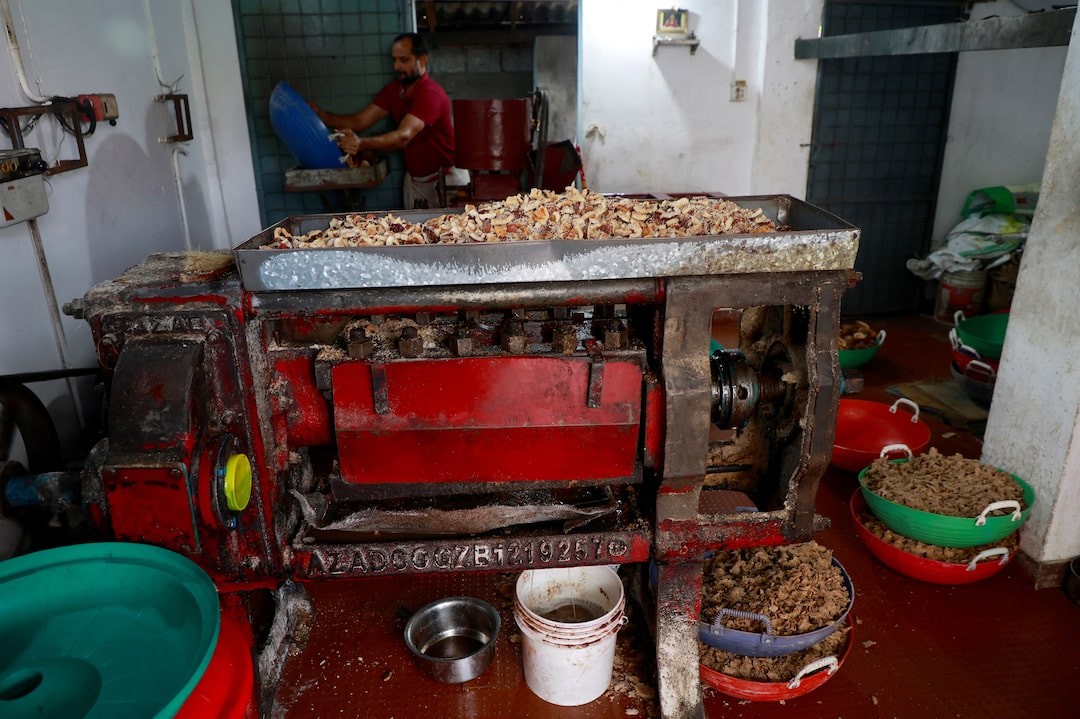 圖1/4:2025年7月23日,印度科欽一家零售店內,顧客在購買前檢查一瓶椰子油。路透社/Sivaram V