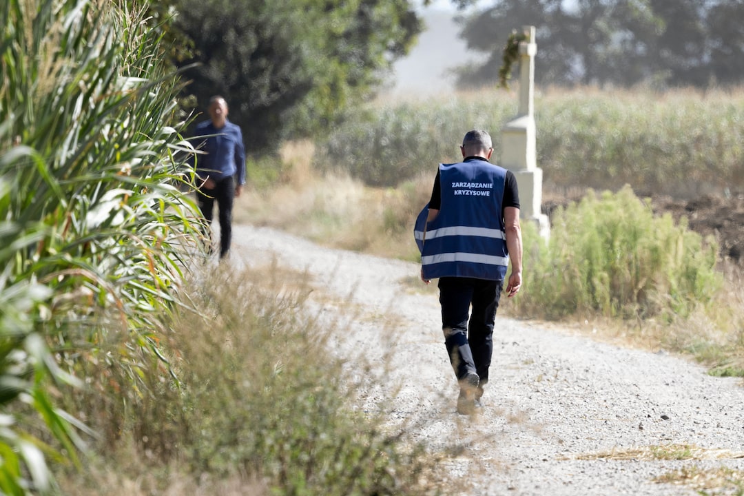 圖1/5:2025年8月20日,波蘭東部奧西尼村,據波蘭當局稱,一個不明物體夜間墜落並在玉米田爆炸後,一輛憲兵隊車輛停駐現場。路透社/Kacper Pempel