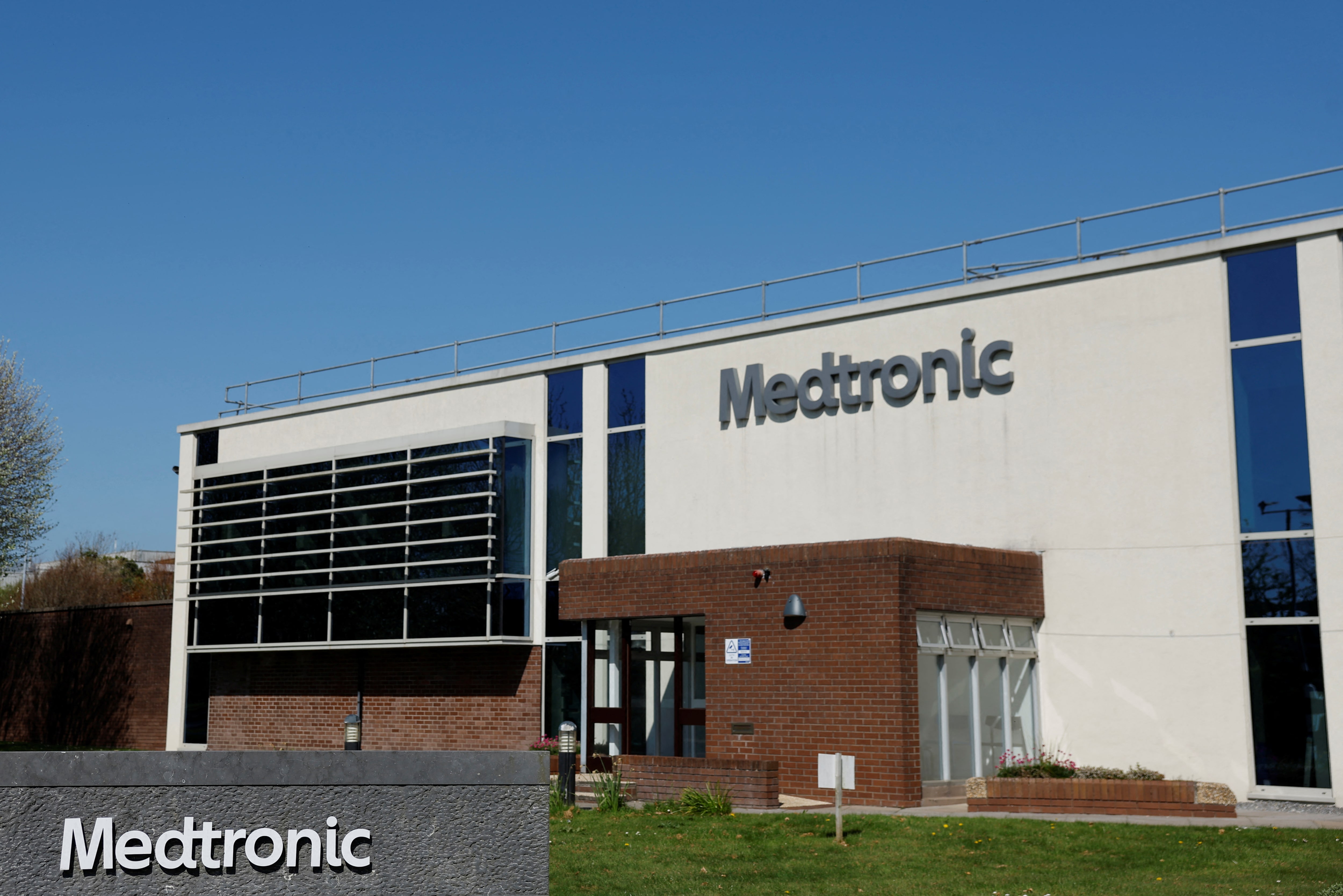2025年4月11日,醫療科技與製藥公司美敦力(Medtronic)位於愛爾蘭高威工廠的標識全景。路透社/Clodagh Kilcoyne/資料圖片 購買授權許可,打開新標籤頁8月20日(路透社)- 過去一年中,維權投資者瞄準了多家大型醫療保健公司,以推動它們提升業績,其中一些行動僅在宣佈董事會變動後才浮出水面。