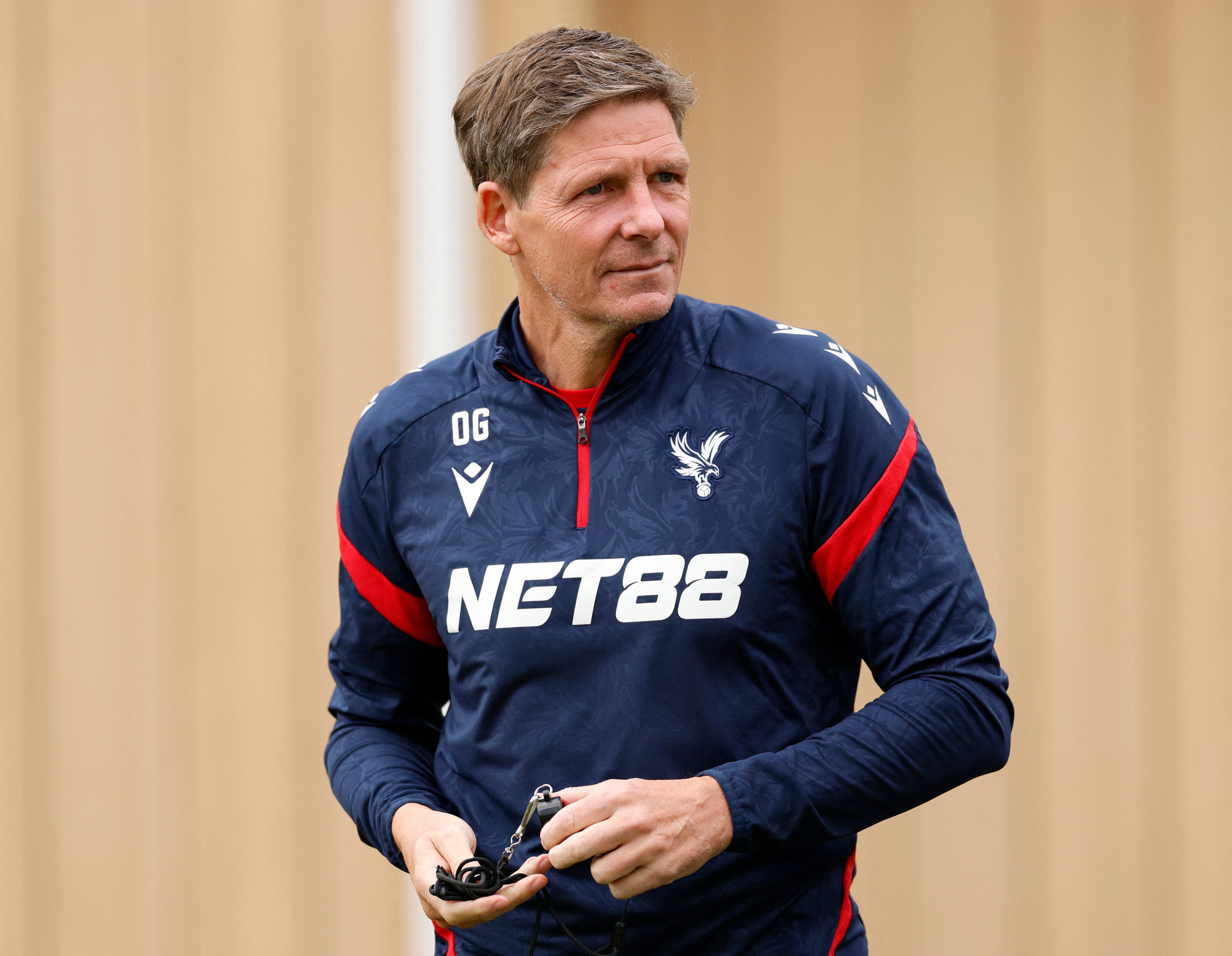 水晶宮隊主教練奧利弗·格拉斯納在2025年8月20日帶隊訓練。攝影:彼得·澤博拉 - 路透社購買授權許可,打開新標籤頁倫敦,2025年8月20日(阿拉伯路透體育服務)——儘管有轉會傳聞纏身,埃貝雷奇·埃茲和馬克·格伊仍將代表英格蘭水晶宮隊首發出戰歐協聯資格賽首回合。