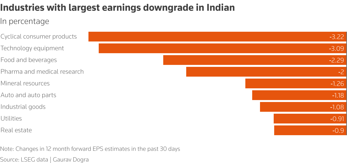 根據倫敦證券交易所集團IBES數據,過去兩週印度大中盤股企業未來12個月盈利預期被下調1.2%,降幅居亞洲之首。