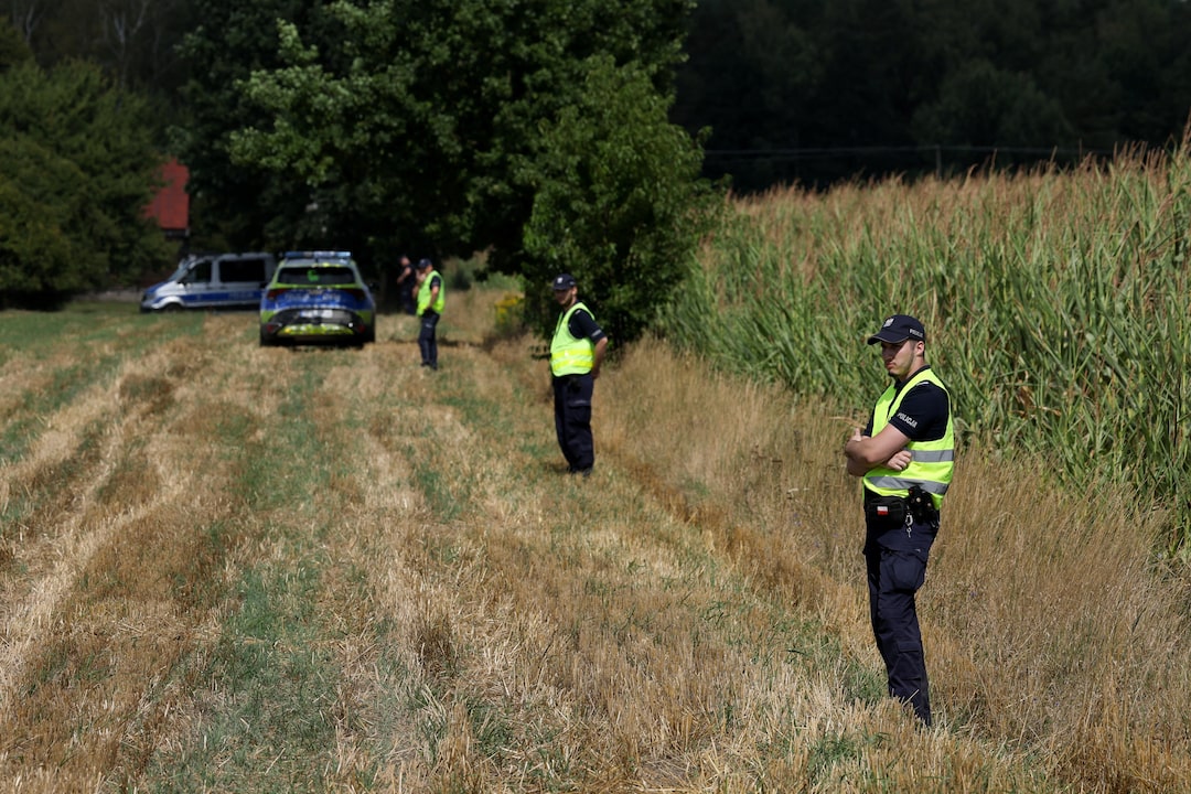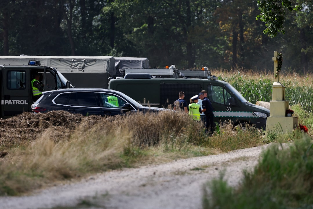 圖1/5 2025年8月20日,波蘭東部奧西尼村,據波蘭當局稱,一個不明物體夜間墜入玉米田併發生爆炸後,警察封鎖了該區域。路透社/Kacper Pempel