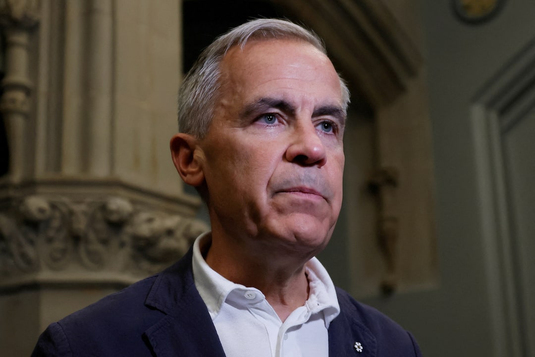 2025年6月30日,加拿大總理馬克·卡尼在安大略省渥太華國會山辦公室外對記者發表講話。路透社/布萊爾·蓋博/資料圖片