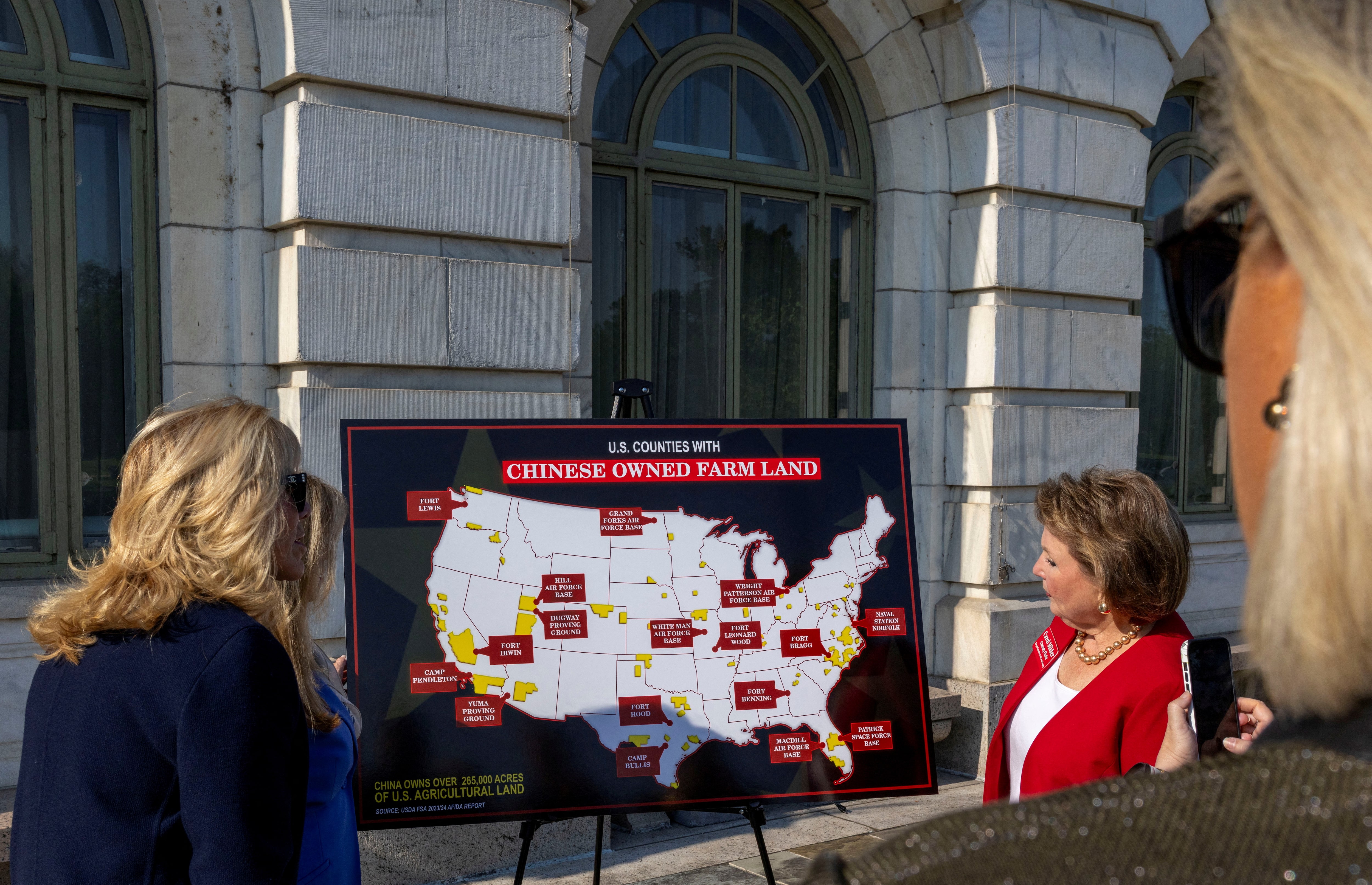 2025年7月8日,美國華盛頓特區,在美國農業部長布魯克·羅林斯就農業部"國家農場安全行動計劃"舉行新聞發佈會前,人們在美國農業部大樓前查看地圖。路透社/烏米特·貝克塔斯/資料圖片購買授權許可,打開新標籤頁路透華盛頓8月21日電 - 據立法者、農業團體和該機構工作人員稱,美國農業部計劃關閉其位於華盛頓特區附近的旗艦實驗室,可能會破壞對農場至關重要的害蟲、枯萎病和作物遺傳學的研究。